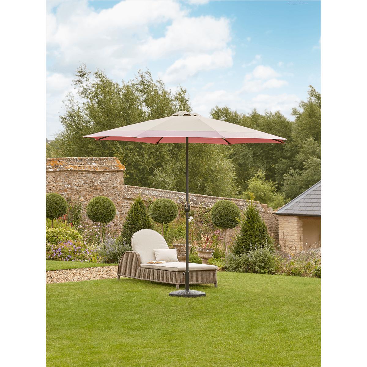 Our two tone parasol with its soft blush edge is an elegant addition to any outdoor space on a warm day. With its UV30 coating, it’s practical as well as pretty. The parasol comes with a sturdy base on wheels, so you can easily adjust your position as the sun moves round.