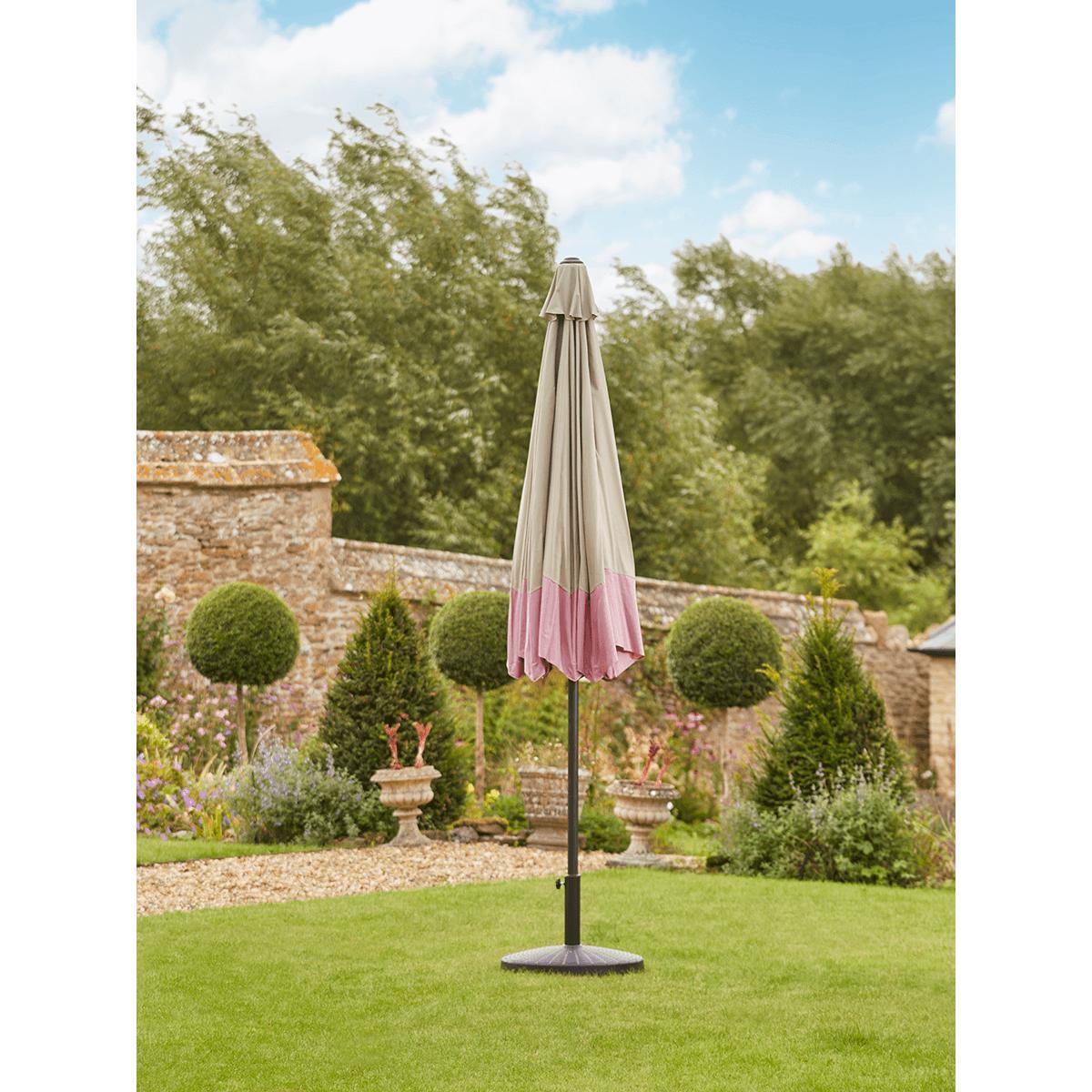 I love this pink and grey parasol - it’s a versatile piece that adds a gentle splash of colour while maintaining a sophisticated look. It works well in relaxed garden settings, courtyard terraces, or even outdoor cafés, especially when you want a bit of understated elegance. Practical styling tips include pairing it with matching outdoor furniture in neutral tones or soft shades to let the parasol be the focal point. It’s also a great way to introduce subtle colour into your space without overwhelming the natural surroundings. When not in use, you can fold it down neatly, making it a practical choice for changing weather or for storing during the off-season.