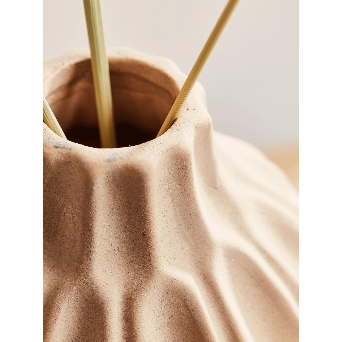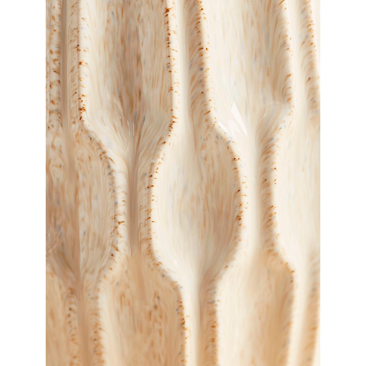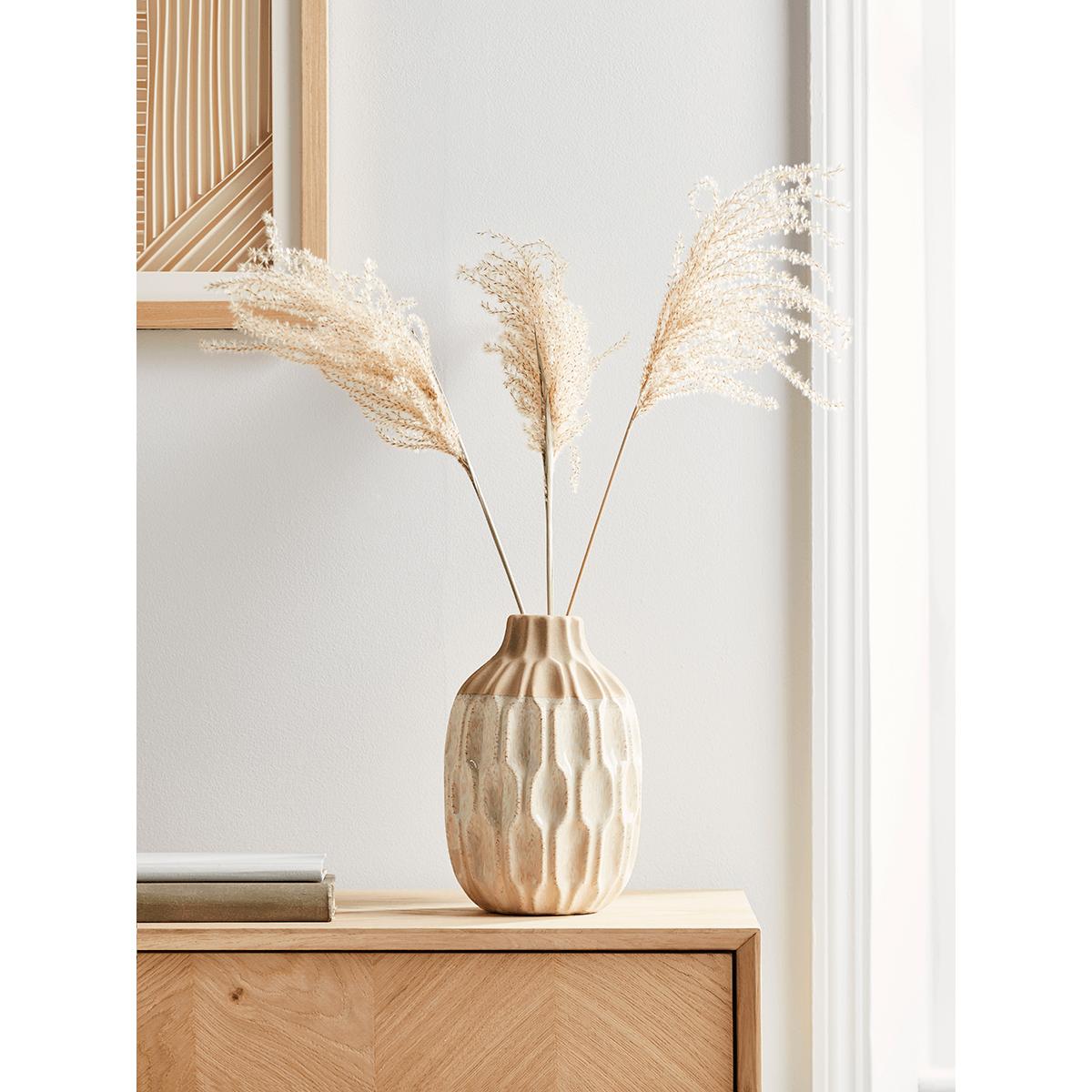 With a glazed, off white, slightly speckled body, textured matte neck and three dimensional surface pattern, our Two Tone Soft Geometric Vase will add interest and character to your living space. Place atop one of our fabulously versatile. Console tables. With a few decorative sprigs of. Pampas grass. To achieve a serene, pared back aesthetic.