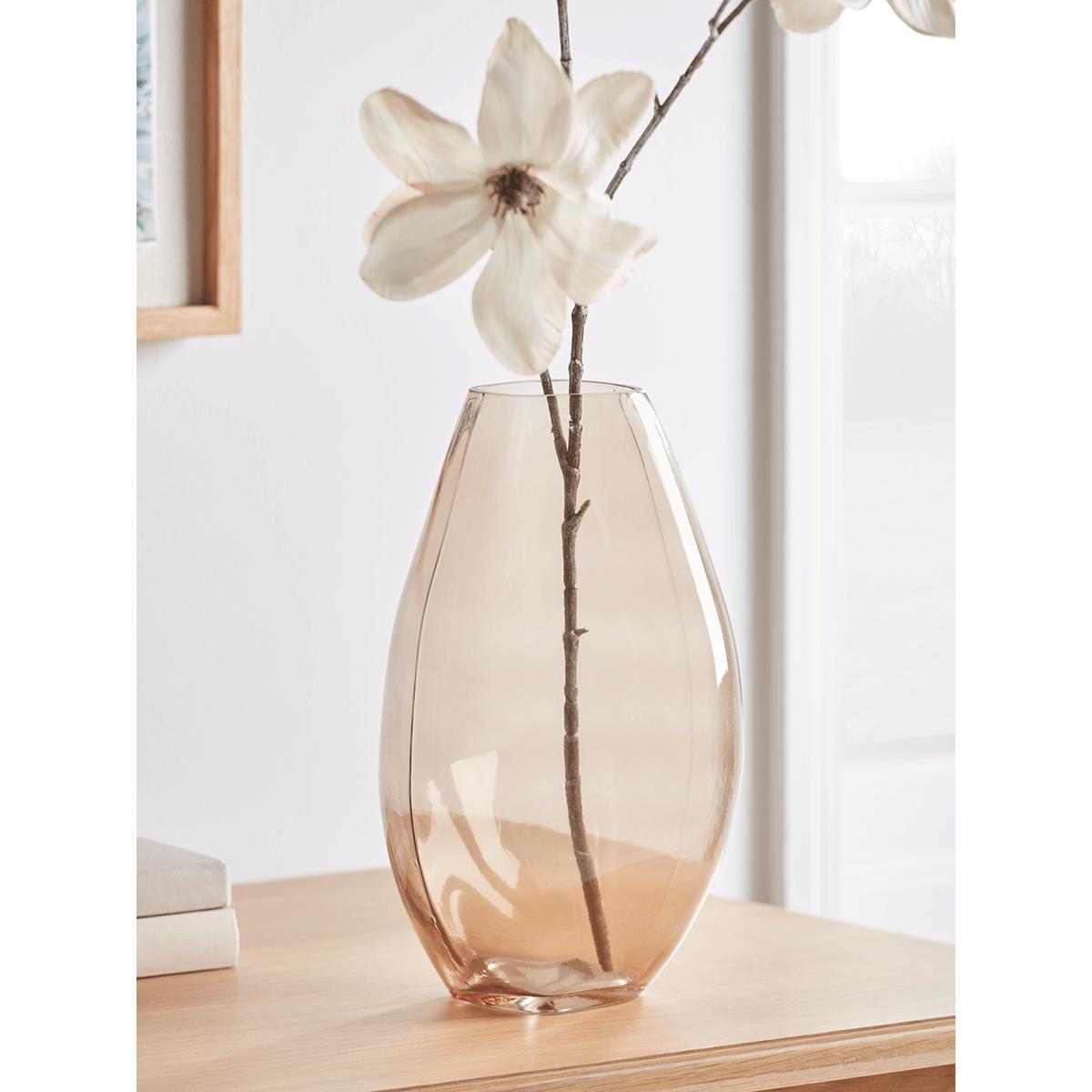 I really like this one for its soft blush hue and organic shape - it adds subtle colour without overwhelming a space. It works particularly well in minimalist or contemporary interiors, where its simple elegance can shine. For styling, place it as a standalone feature on a side table or mantle, and fill with seasonal blooms or a single, striking stem for added impact. Its size and shape make it versatile, so it can also sit comfortably on a shelf or console. Just remember, less is more with this vase; letting it be the star of your display will give it the maximum visual effect.