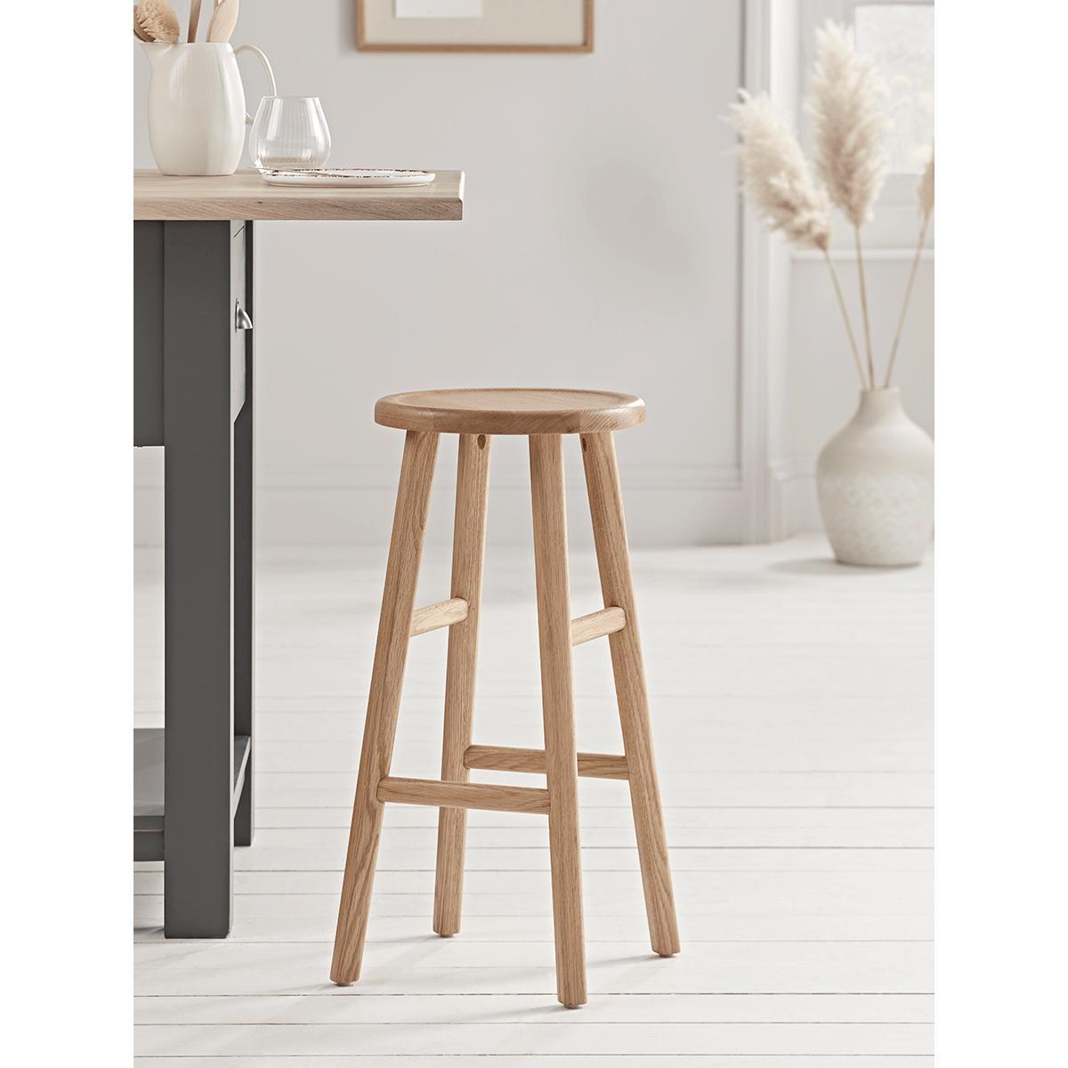 Crafted from sturdy oak with a smooth finish that allows the wood’s natural grain to show through, our Weathered Oak Farmhouse Counter Stool is the perfect homage to simple design with its neat, round seat and slender legs. With a rung on which to rest your feet, our robust stool is the perfect height for a breakfast bar and complements many interior styles, especially a pared back Scandi-inspired look. Find the perfect stool for your space using our. Stool Buying Guide.