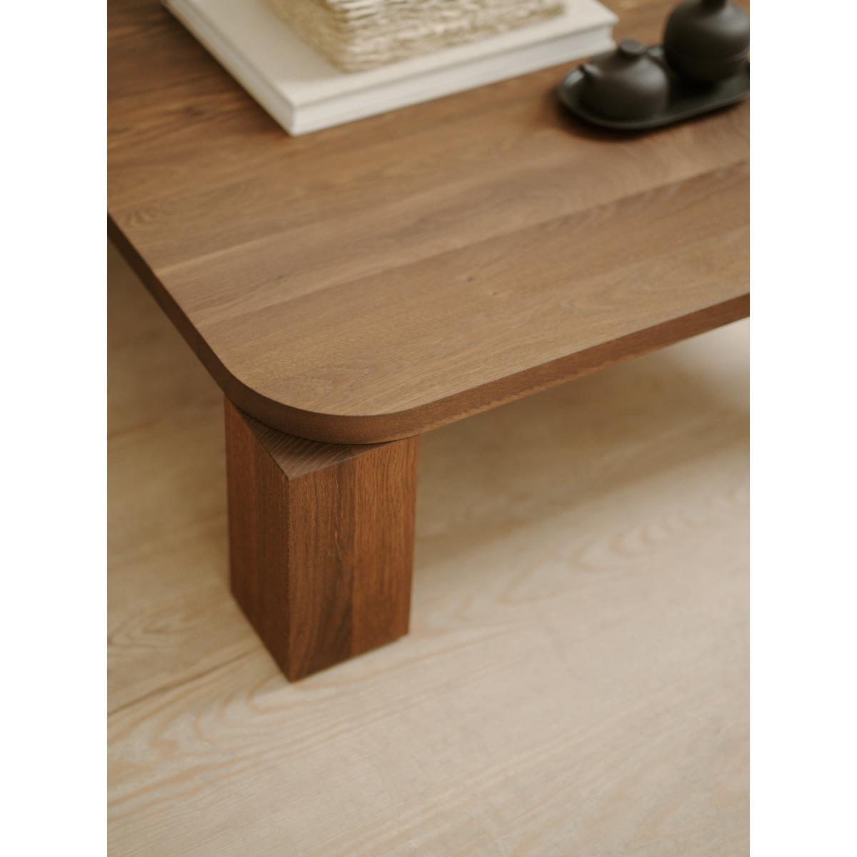 I really like this coffee table because of its clean, minimal design and robust timber feel, which makes it a versatile piece for many interiors. The dark smoked oak adds depth and warmth, making it suitable for both contemporary and more traditional spaces. It works particularly well in open-plan living areas or in spaces where you want to create a focal point that balances modern decor with natural elements. For styling, consider layering with textured accessories like ceramic bowls or books, and add a pop of colour nearby with cushions or throws to soften the overall look. Its substantial size also makes it practical for hosting or everyday use, while its simple silhouette keeps the room feeling uncluttered.
