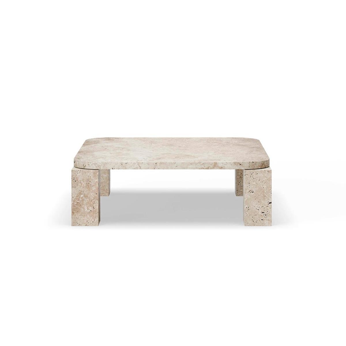 Named after the mythical Titan condemned to hold up the heavens on his shoulders, the solid legs of the Atlas Coffee Table stand strongly as support for the spacious tabletop. The meeting and contrast between the legs and the tabletop is central to the design, where each element exaggerates the other giving the table its distinct presence and brutalist feel. For Atlas, John Astbury has taken inspiration from several influences in architectural history. There are references to porticoes and colonnades, but Atlas builds mainly on the archetypal post-and-lintel construction. Combined with simple geometry, the circle and the square, it is the primary archetypes that together create the table's character and composition.