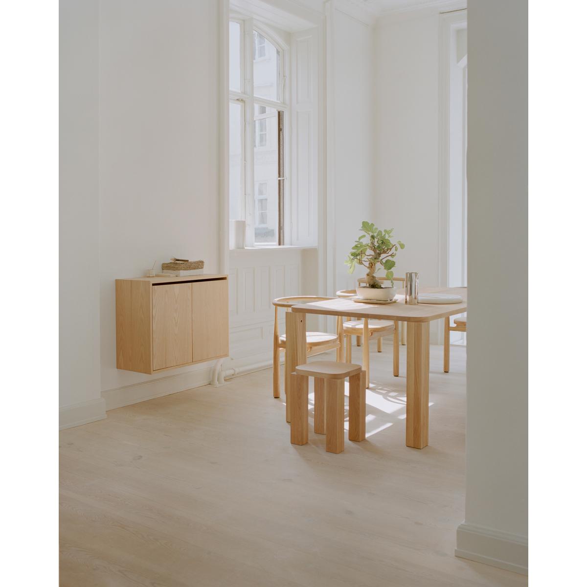 The New Works Atlas stool in natural oak is a versatile piece that works well in both contemporary and Scandi-inspired interiors. I love its clean lines and understated design, making it an ideal add-on for kitchens, breakfast bars, or side spaces where a minimalist touch is desired. Stacking or grouping a few can create a practical yet sculptural element in open-plan living. Practical styling tips include pairing it with plush cushions for added comfort or positioning it near a potted plant or textured rug to soften its solid form. Its natural oak finish makes it easy to integrate with other wood tones or contrasting materials like metals and textiles, ensuring it complements a variety of colour palettes and styles.