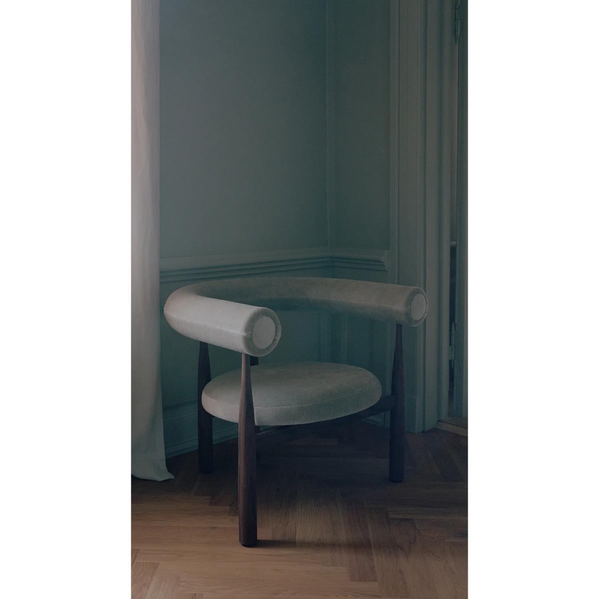 I love this armchair for its striking yet understated design, blending sculptural elements with a warm walnut veneer that adds character to any space. Its rounded back and plush seat make it inviting for reading corners, living rooms, or even statement pieces in a bedroom. It works particularly well in contemporary and Scandinavian-inspired interiors, where its natural materials and clean lines can shine. For styling tips, consider pairing it with soft textiles like linen cushions or a cozy throw to soften the solid wood, and place it near other wooden or neutral-toned furniture pieces to create a cohesive look. Keep the surrounding decor minimal to highlight its form, or add a small side table and a lamp for a cosy, functional nook.