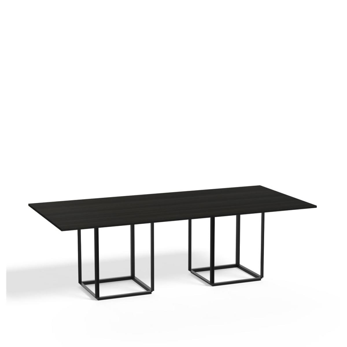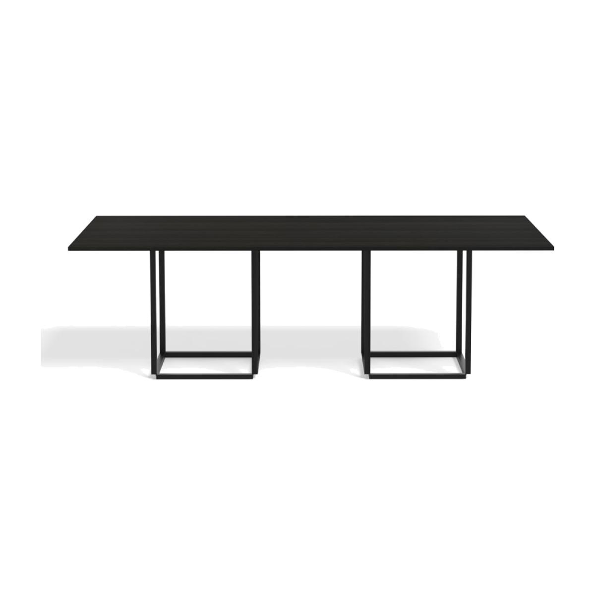 I love how this dining table combines simplicity with contemporary appeal. The black ash finish brings a sleek, understated look that works particularly well in modern or industrial interiors, but it can also complement more eclectic spaces. Its clean lines and minimalist design make it versatile enough for both casual family dining and more formal occasions. When styling, consider pairing it with chairs in contrasting textures or colours to create visual interest - for example, upholstered seats or wooden chairs in a different finish. Practical tips include using a runner or placemats to add colour or texture, and keeping the surface clear for a streamlined aesthetic. Overall, this table is a practical statement piece that adapts easily to various interiors while maintaining a stylish edge.