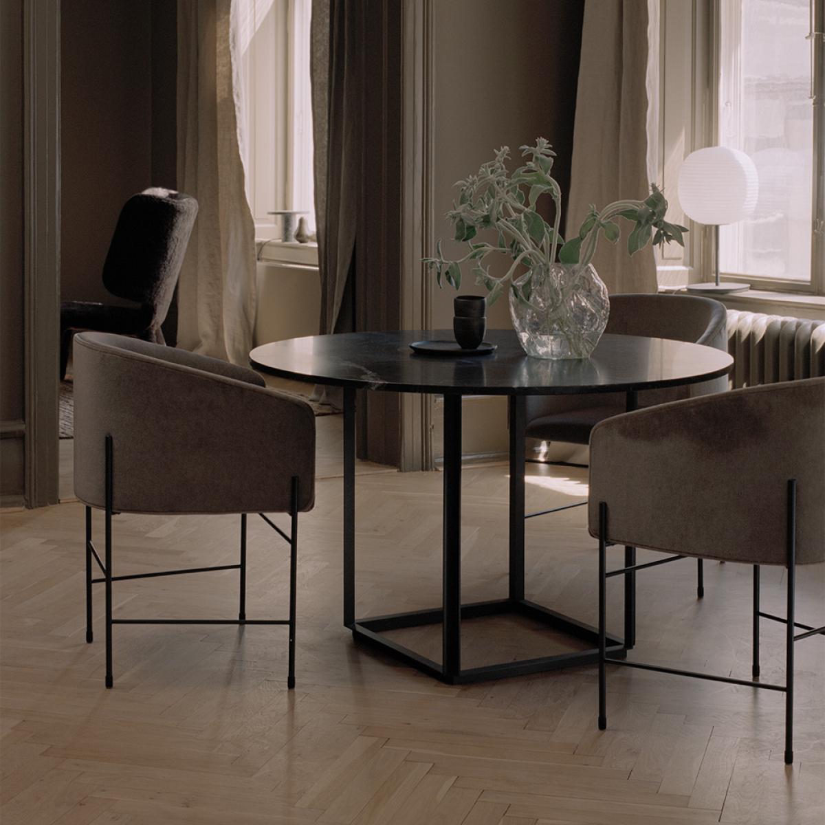 New Works Florence round dining table Walnut. ø145 cm. black stand