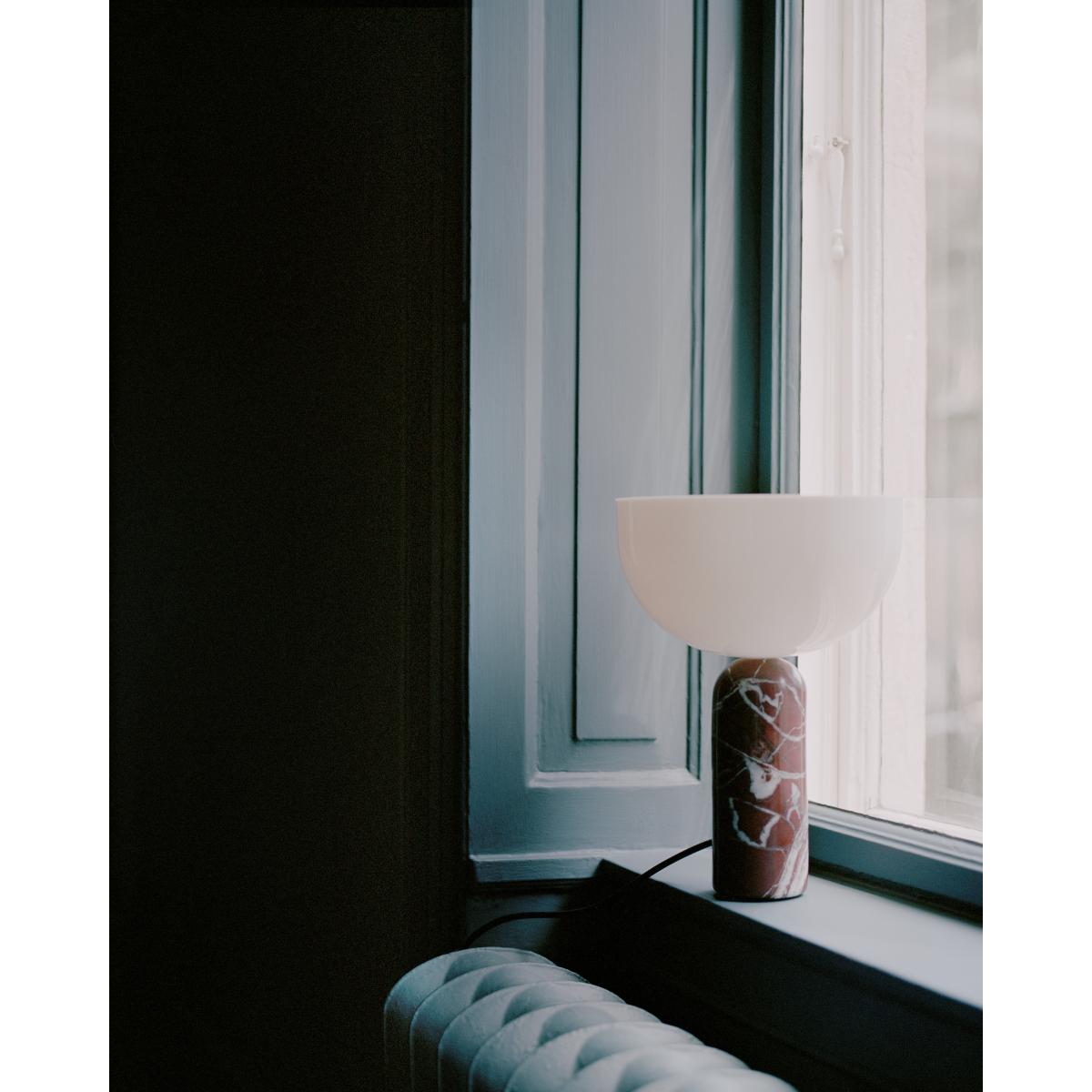 I love this little Kizu table lamp for its sculptural quality and material blend - the contrast between the sleek 'Rosso Levanto' marble base and the soft, rounded shade makes it a versatile addition for many interiors. It works particularly well in contemporary or minimalist spaces, where its bold base can act as a statement piece without overpowering the overall look. Practical styling tips include placing it on side tables, consoles, or bedside tables to add warmth and texture, especially when paired with other natural materials. Its compact size makes it perfect for smaller spaces or as an accent light, providing both function and a touch of visual interest.