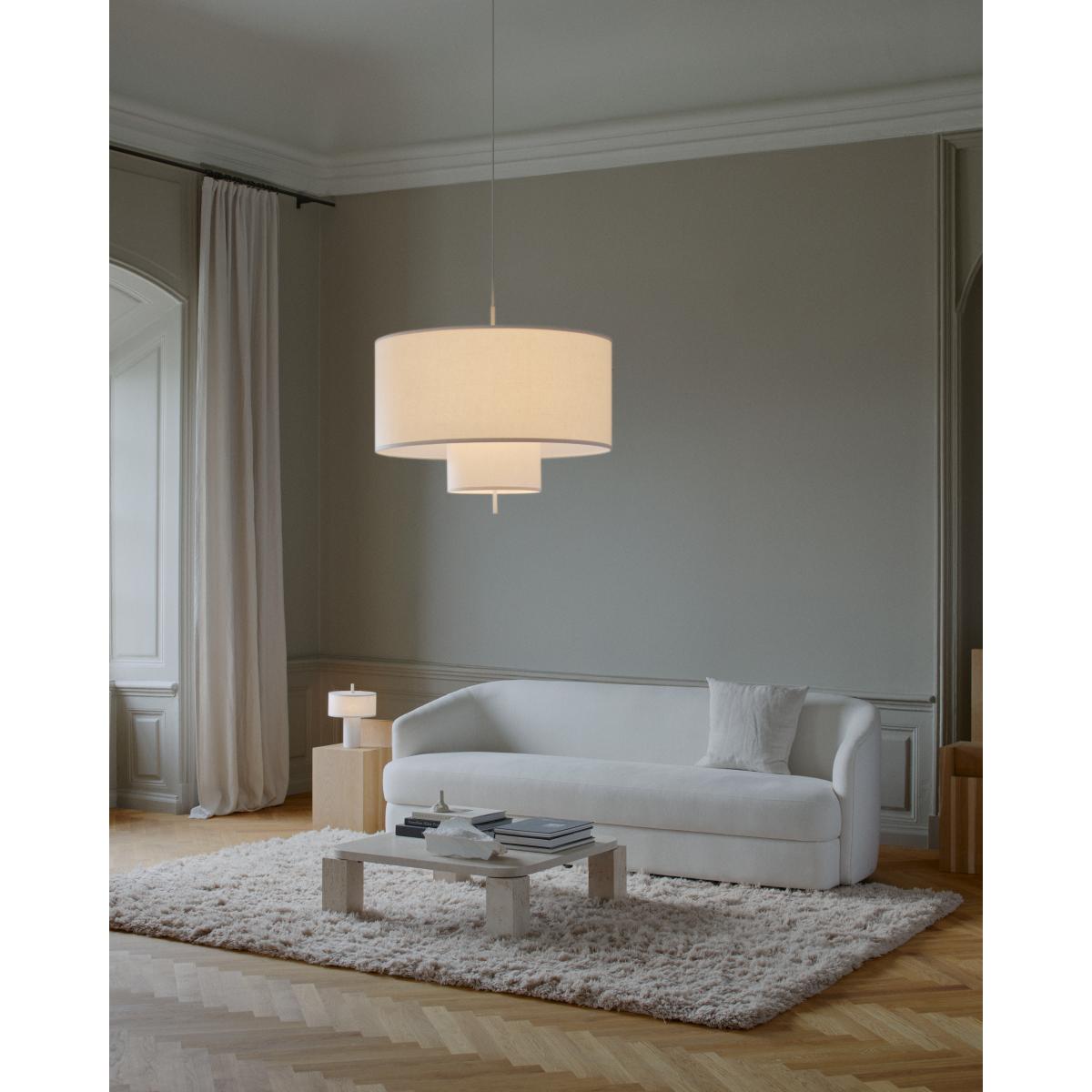 Margin pendant lamp Ø90 cm from Danish New Works is a large and stylish lamp that, thanks to its double canvas lampshades, spreads a soft and pleasant light. The lamp is available in several sizes to choose from and goes excellently with the other lamps in the Margin series.