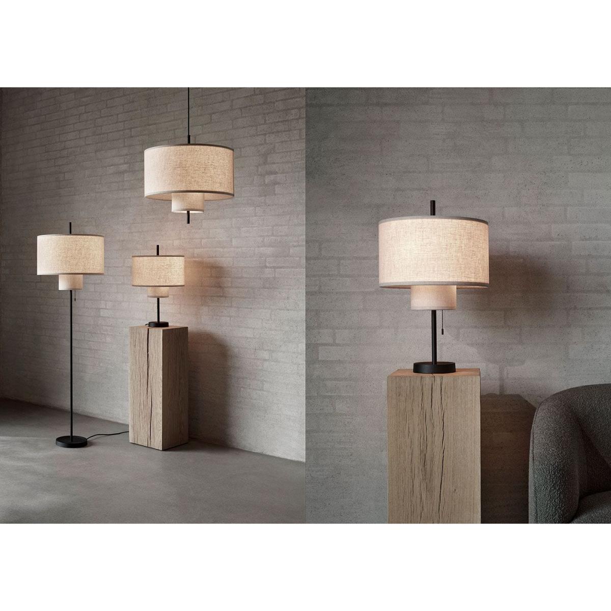 The Margin lighting family is designer John Asbury’s modern interpretation of a classic luminaire. Exploring a tiered typology for lighting, Margin’s intersecting shades gently diffuse the light and instantly set the tone with warmth and tactility. The softness of the fabric is tempered by a clean and graphic silhouette that lends a certain presence and volume to a space. It is the sense of proportions, along with details such as the linear element through the lamp, which sharpen the aesthetics and allow Margin’s special character to unfold.