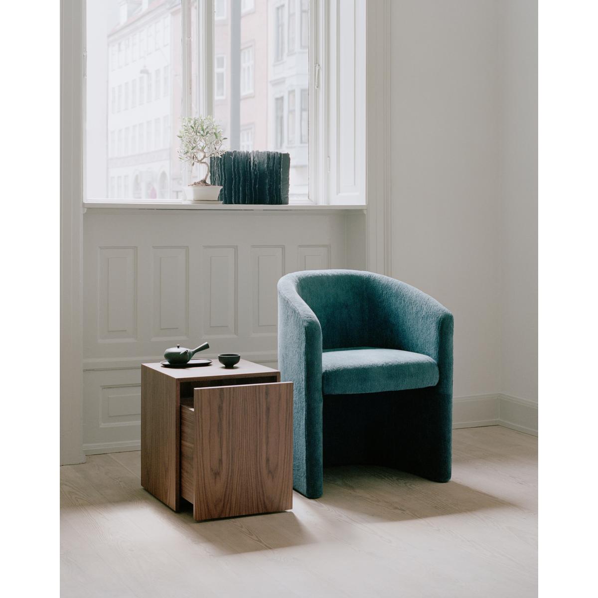 I really like this side table because of its sleek, minimalist design and warm walnut finish, which brings a touch of natural elegance to any room. It works particularly well in contemporary or Scandi-inspired interiors, adding texture without overwhelming the space. For styling, I suggest keeping the surface clutter-free with a statement lamp or a small indoor plant, and utilising the drawer for discreet storage of everyday essentials. Its compact size makes it versatile-great beside a sofa or bed-and the wood tone helps it seamlessly blend into both light and dark colour schemes. Overall, a functional and stylish piece that adds warmth and practicality.