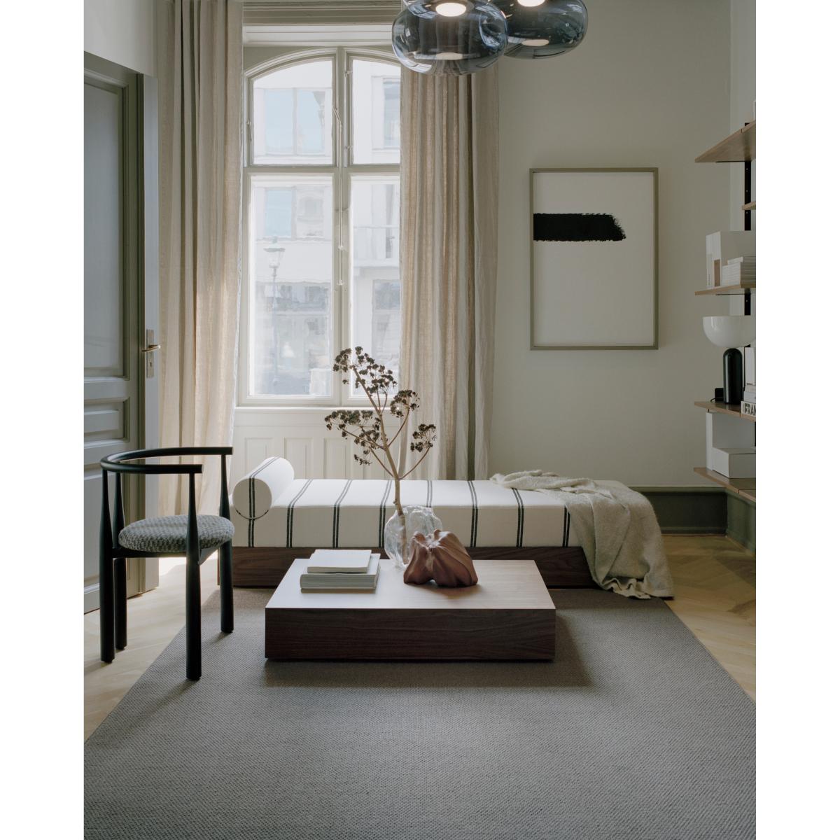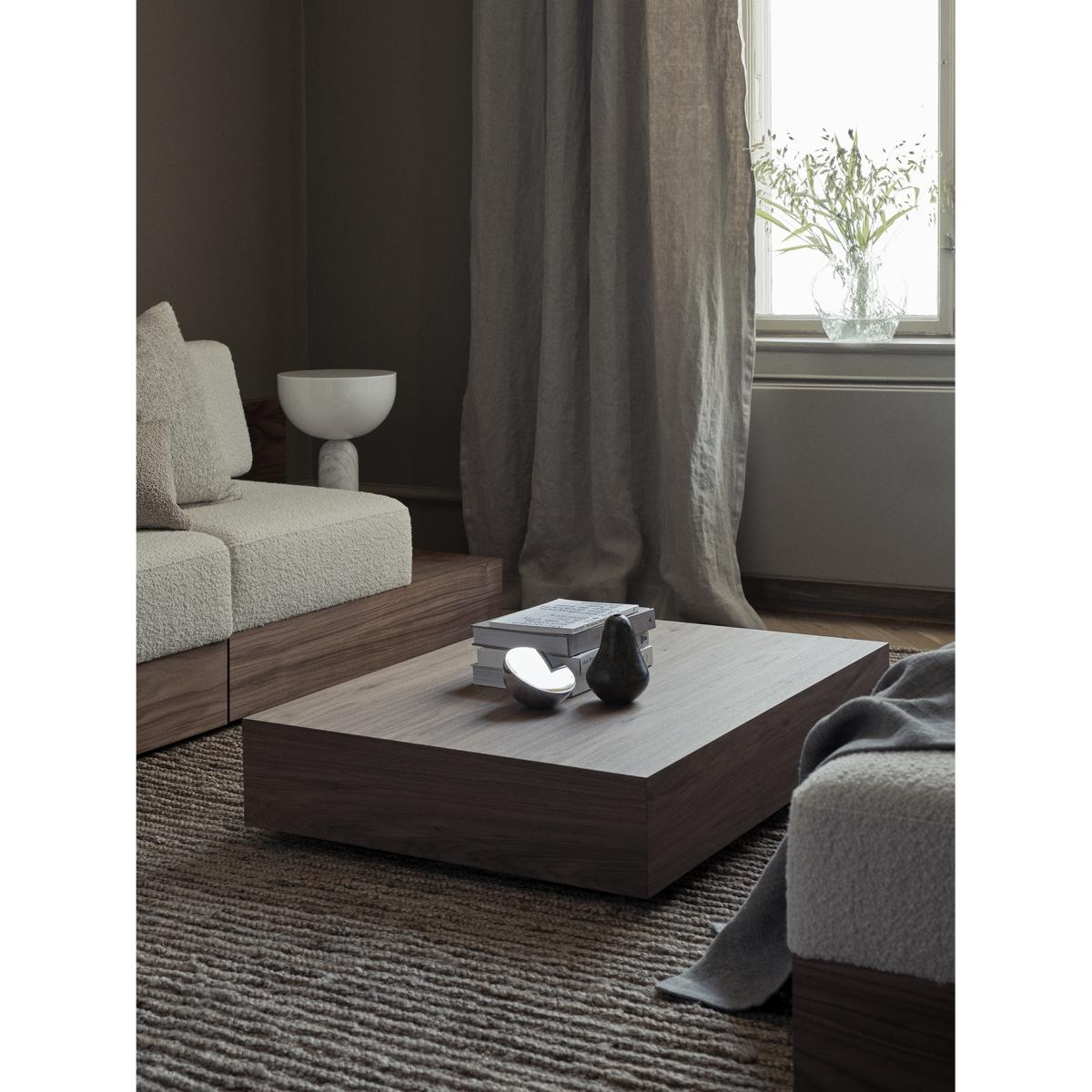 I’m a fan of the Mass coffee table in walnut for its clean, monolithic shape and warm tone - it anchors minimalist, Scandinavian and Japandi interiors without fuss. Its low profile and generous proportions also work well in contemporary or mid-century living rooms, where you need a subtle focal point that doesn’t compete with other furnishings. Styling-wise, keep accessories simple and layered: a round tray in a contrasting material (stone or metal), a small stack of coffee-table books, plus a single sculptural vase or bowl. Introduce a touch of greenery or a ceramic object to soften the edges, and you’ve got a practical, uncluttered look that’s easy to refresh.