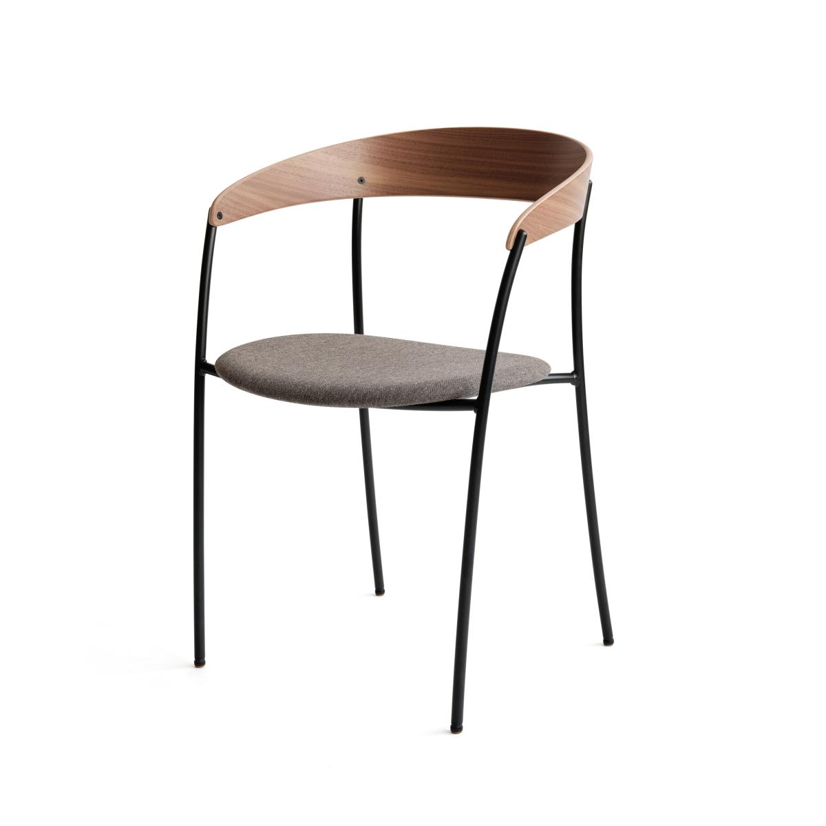 I’m a big fan of the Missing armchair in walnut for its clean lines and subtle curves - the slim black steel frame keeps things light, while the warm timber backrest and muted grey seat fabric add just enough texture. It slots effortlessly into Scandinavian-inspired dining areas, contemporary home offices or pared-back living rooms, offering comfort without bulk. For practical styling, pair it with a simple oak or black-metal table to echo the chair’s materials, and layer in tactile accents such as a woven place mat or a linen cushion in soft neutrals. Its slim profile means you can tuck it neatly under narrow desks or mix several around a round breakfast table without overwhelming the space.
