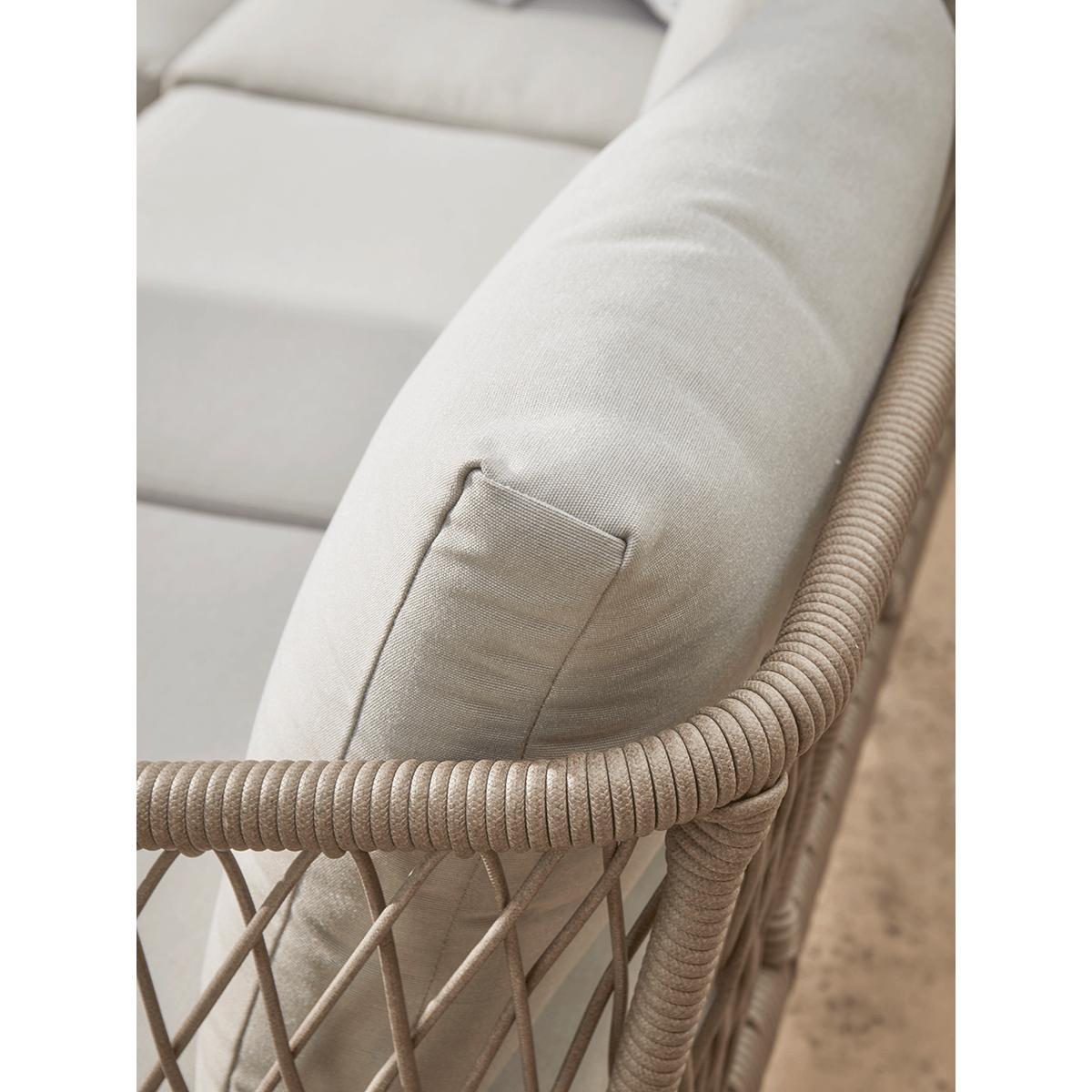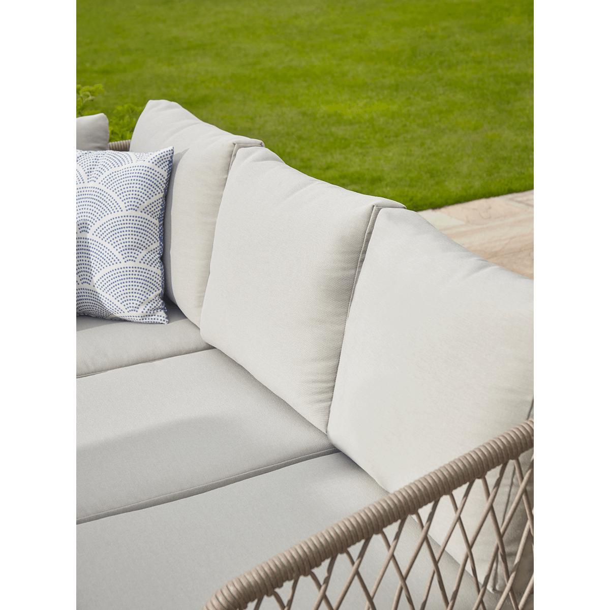 I love the woven rope corner set for its contemporary yet approachable look, making it versatile for a variety of outdoor spaces. It works particularly well in modern or coastal-inspired gardens, adding a relaxed but polished vibe. Practical styling tips include pairing it with neutral or muted cushions to keep the look fresh, and placing it on a patterned outdoor rug for added visual interest. For a lively touch, incorporate colourful accessories like outdoor lanterns or throws, which easily elevate the space for casual gatherings or chill-out zones. Its understated elegance makes it adaptable, whether you'll use it as a focal point or part of a layered outdoor lounge.