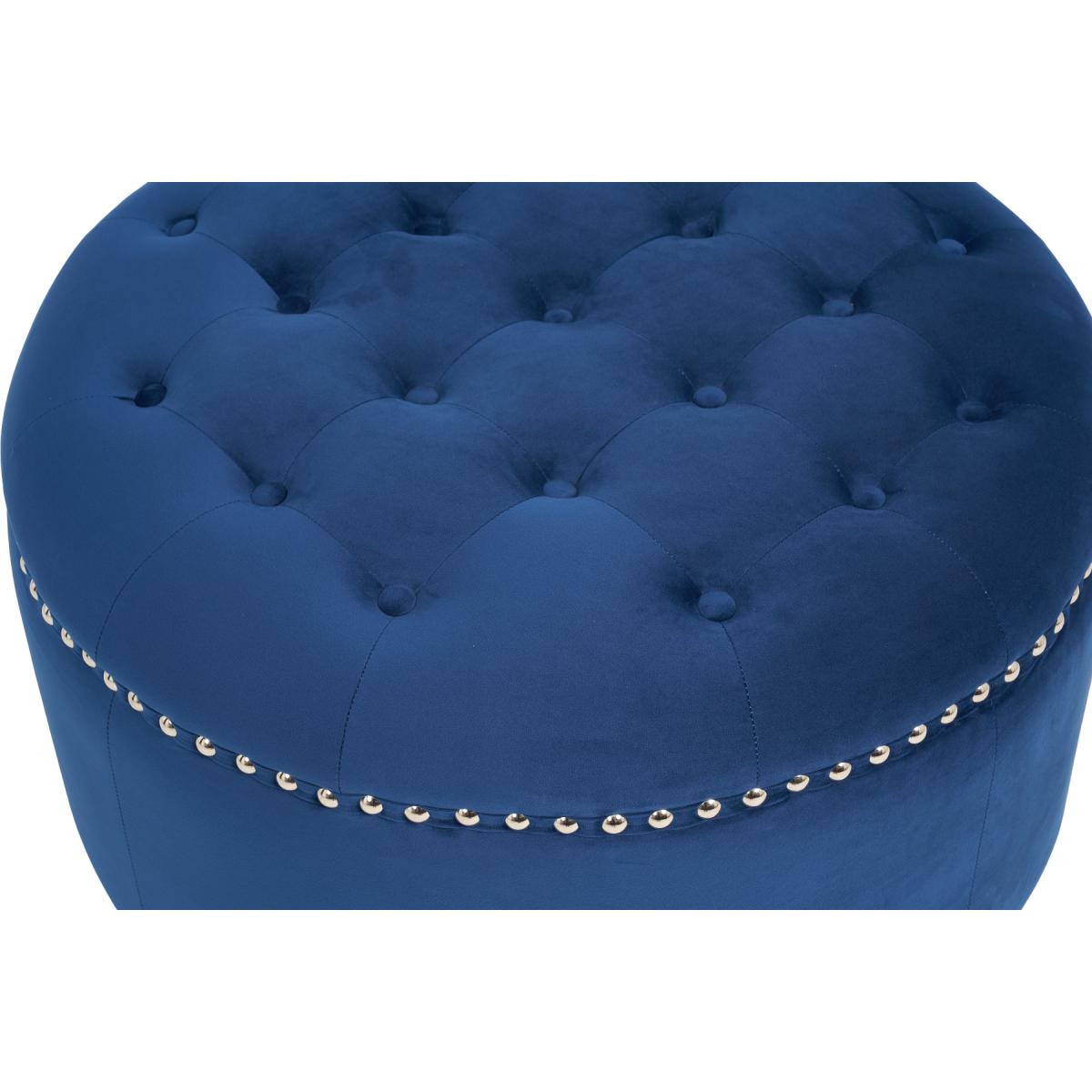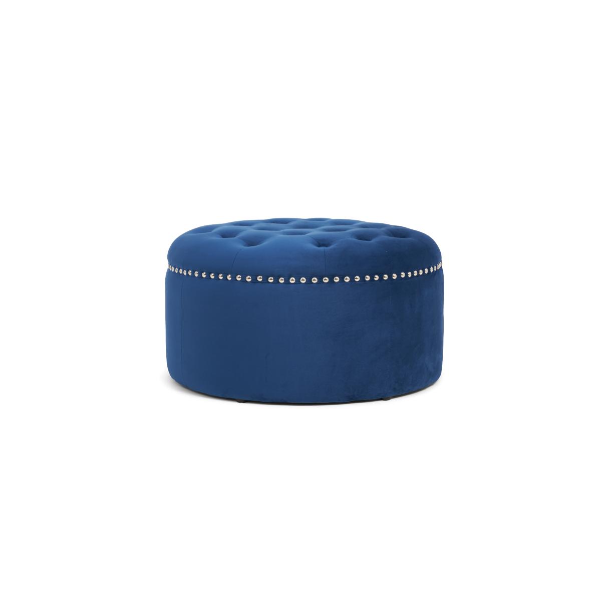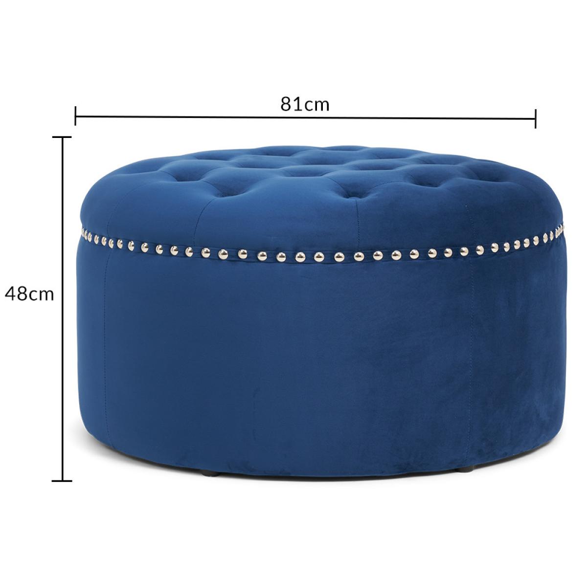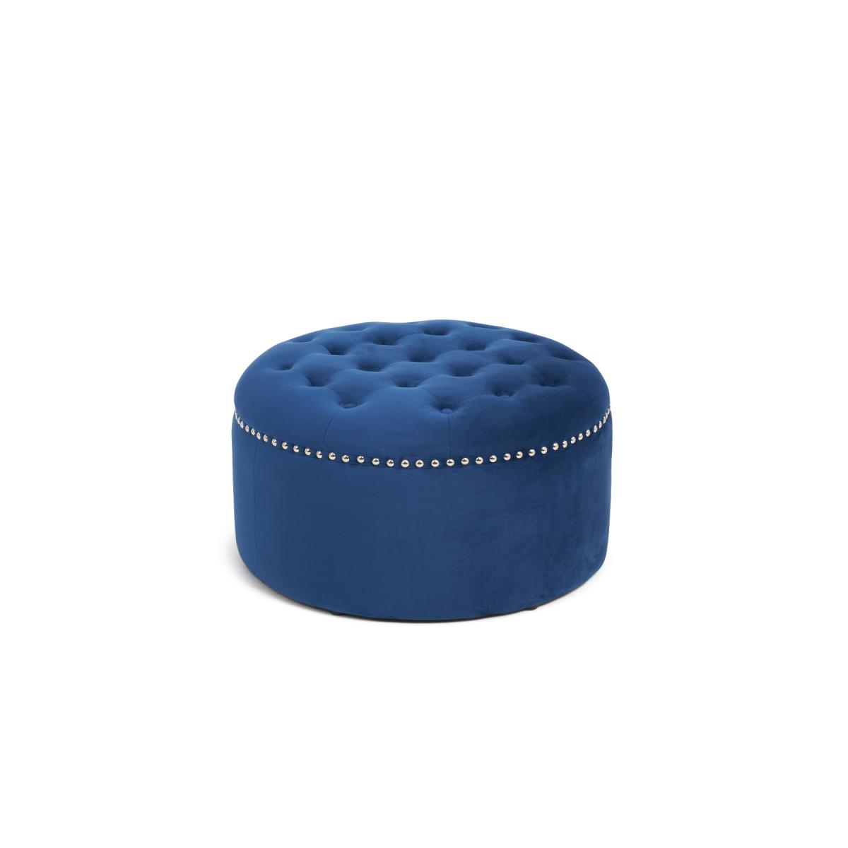 The New York Blue Velvet Footstool features a stunning classic design that adds a touch of luxury to your living room. Complementing the New York Blue Velvet Sofa collection, the round footstool features soft-touch plush velvet with a deep buttoned design on the top and metal studs. Blue velvet footstool is elegant and practical Match it with the New York Blue Velvet Sofa Collection Plush blue velvet is soft to the touch and luxurious Deep buttoning and metal studs for a stunning vintage look Also available in Grey and Green