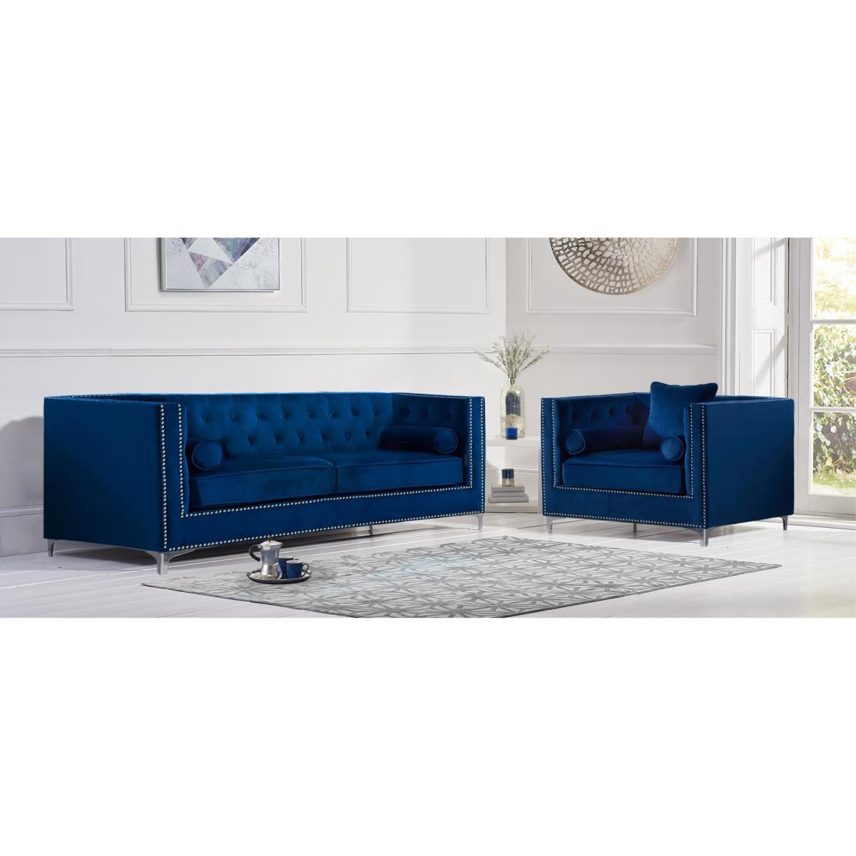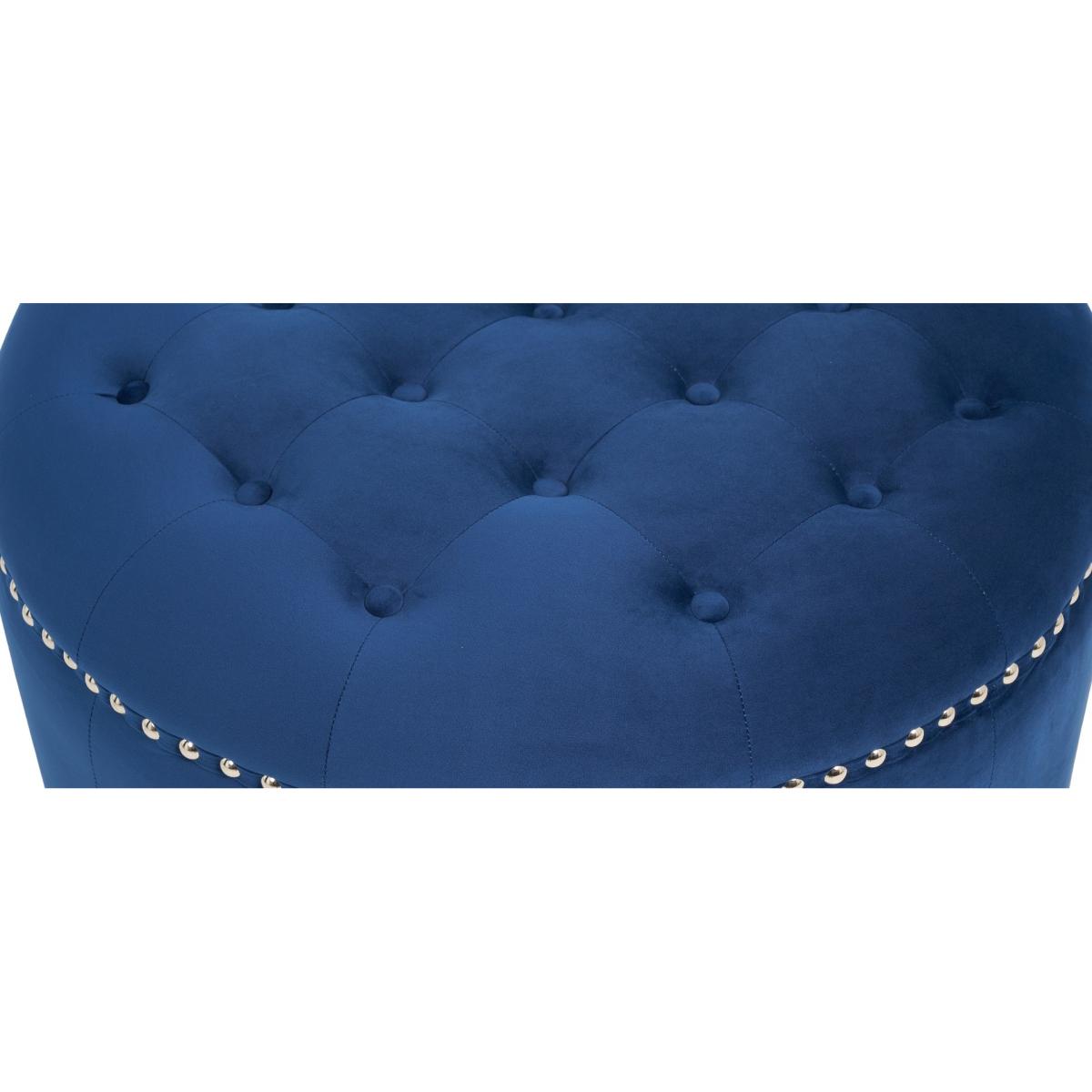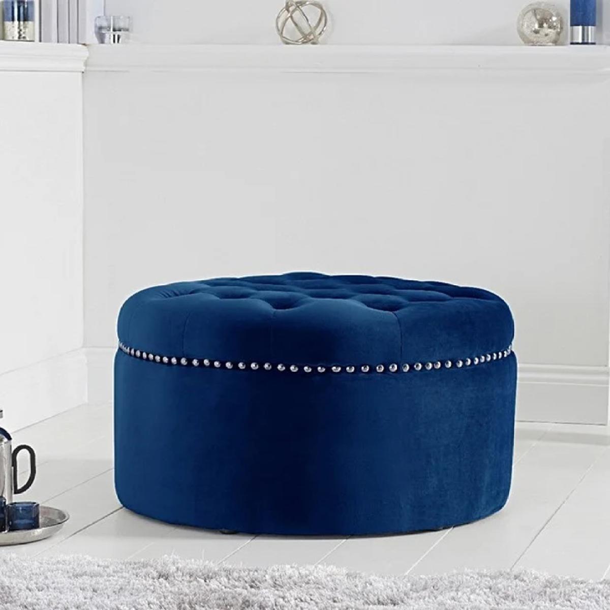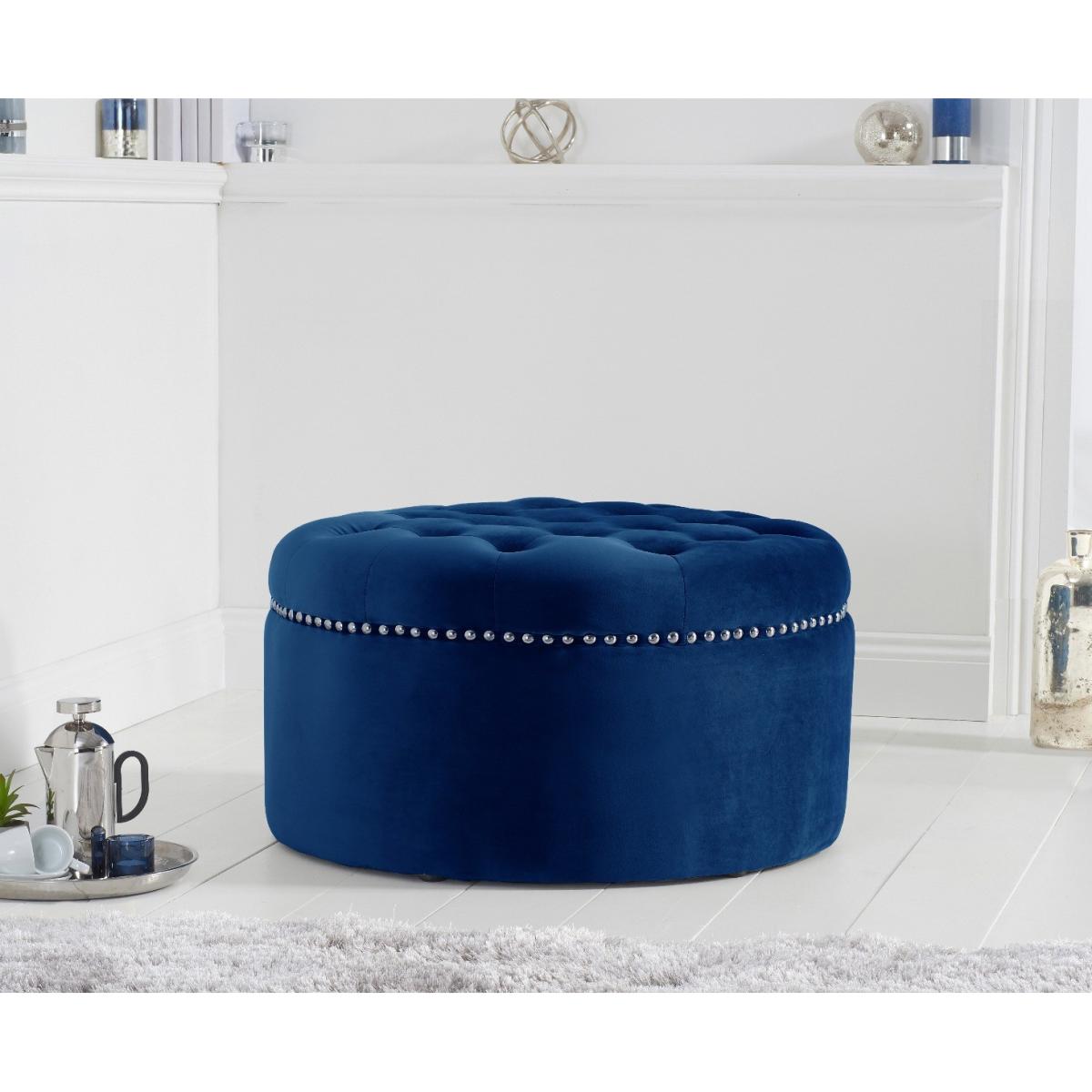The New York Blue Velvet Footstool features a stunning classic design that adds a touch of luxury to your living room. Complementing the New York Blue Velvet Sofa collection, the round footstool features soft-touch plush velvet with a deep buttoned design on the top and metal studs. Blue velvet footstool is elegant and practical Match it with the New York Blue Velvet Sofa Collection Plush blue velvet is soft to the touch and luxurious Deep buttoning and metal studs for a stunning vintage look Also available in Grey and Green