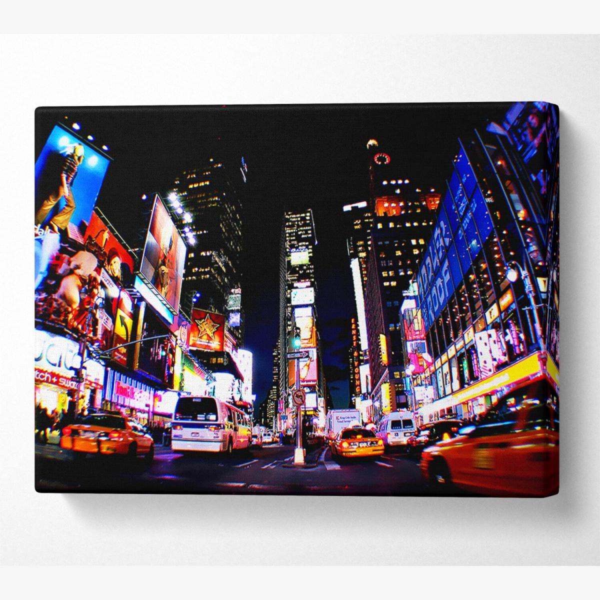New York Broadway Yellow Cabs Canvas Print Wall Art - Yellow / 101.6cm