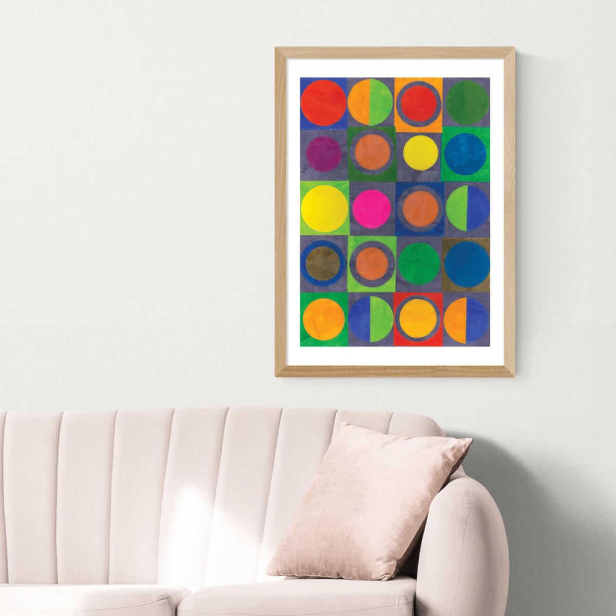 This artwork is hand crafted and made to order for you. Add a funky vibe to your home with this painterly geometric print by Julia Noble. Hang in your living room for a vibrant addition. Additional I. View More. This artwork is hand crafted and made to order for you. Add a funky vibe to your home with this painterly geometric print by Julia Noble. Hang in your living room for a vibrant addition. Additional Information:. Giclee printing process lasting up to 70 years from fading. A2 Sized Print. Giclee printing process lasting up to 70 years from fading. 210gsm acid free archival paper with a digital white border. For every print sold a percentage of profit is donated to Cool Earth, a charity combating deforestation in the rainforest.