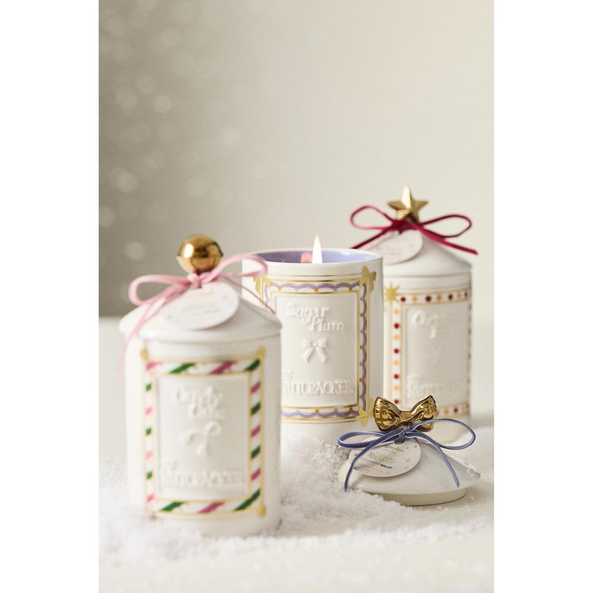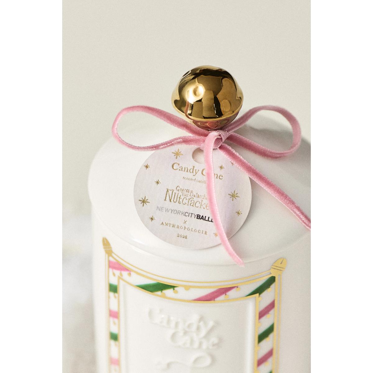 **Peppermint Stick (Gourmand):** The nostalgic allure of old-fashioned candy canes brought to life through frosted peppermint accents swirled with sweet ribbons of pure vanilla sugar. Inspired by the enchanting costumes, ethereal sets, and graceful choreography of the New York City Ballet’s * The Nutcracker*, this only-at-Anthro collection brings festive characters to life in a *révérence* of holiday wonder. *For the best burn experience, keep the following in mind:* * The first time you light your candle, allow it to burn until the wax pool melts all the way to the edge; for a larger candle, this may take several hours. Wax has "memory," so if it is extinguished with a partial pool, that will prevent a full, even pool from forming in the future. * Trim your wick each time you light the candle, removing any "bloom" from the previous burn. We recommend lighting a wick that is 1/4-1/2" in length. * Ensure that your candle is placed on a heat-safe surface. * Do not allow wick trimmings, dust, or other materials to accumulate in the wax pool. * To ensure safety and longevity, be sure to check the bottom of your candle for additional instructions, including details on when to discontinue use. * Exclusively for Anthropologie * 30-hour burn time * Coconut wax blend; cotton candle wick * Ceramic vessel * Imported