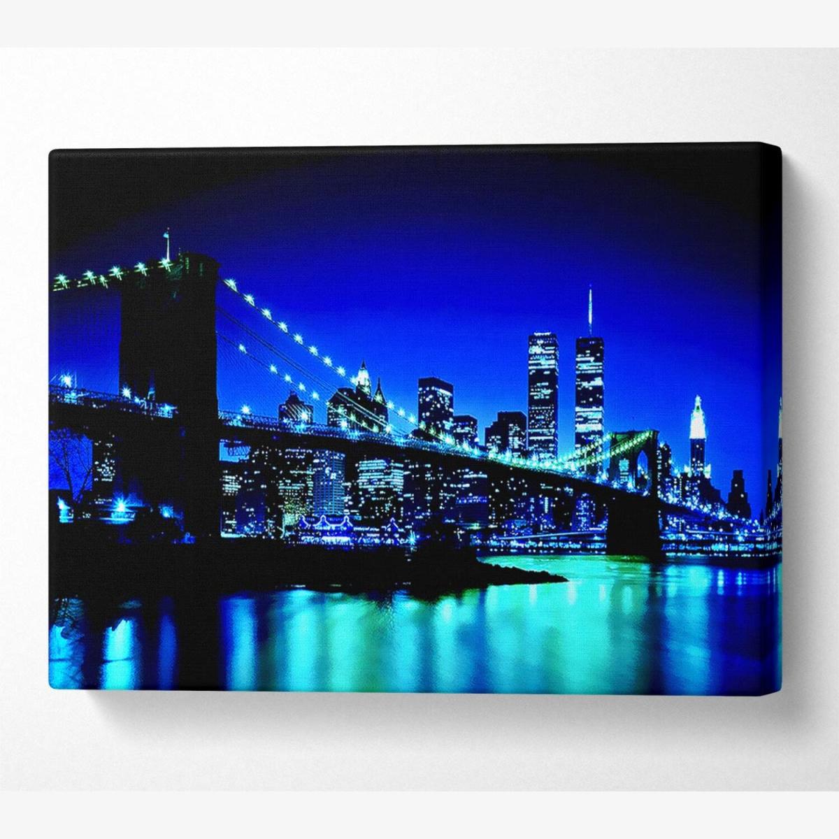 New York City Blue Nights Canvas Print Wall Art - Yellow / 50.8cm