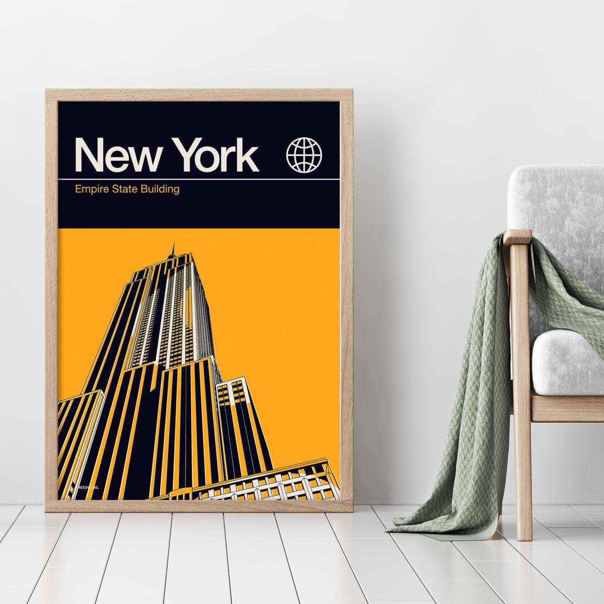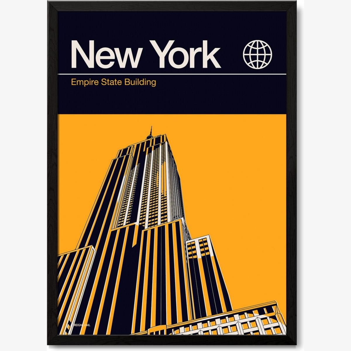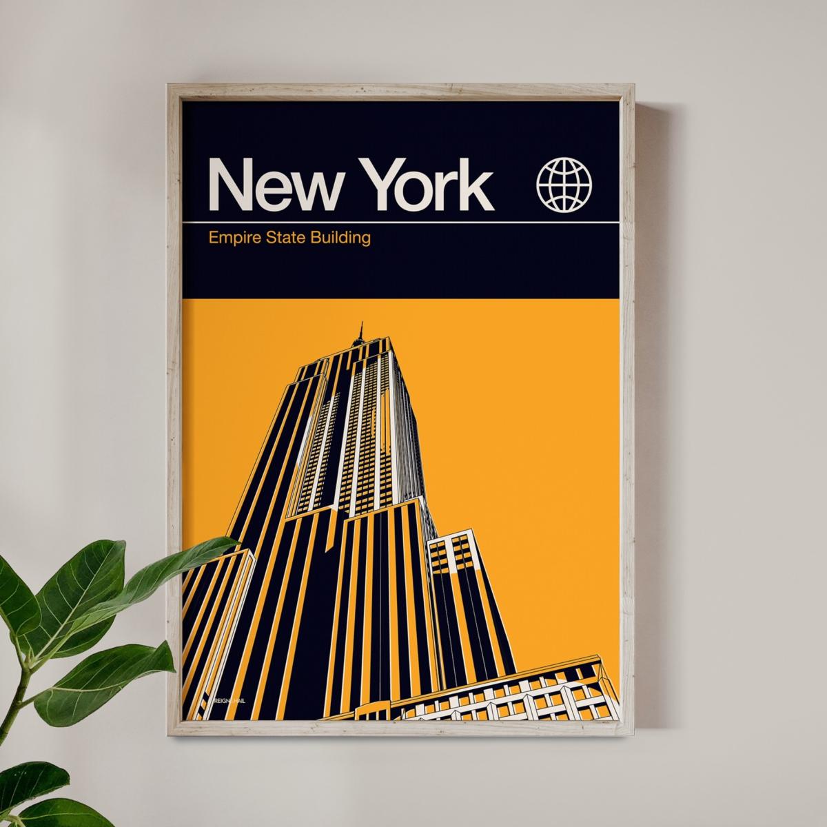 New York Empire State Building Modernist Architectural Travel Poster A2 420 X 594Mm Reign & Hail