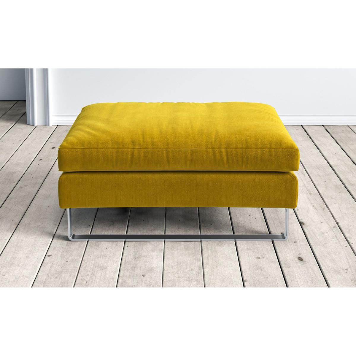 This footstool strikes a great balance between style and practicality, especially with its vibrant yellow velvet finish. I love how it can serve as both a statement piece and a functional addition, perfect for adding a pop of colour to neutral or more muted interiors. It's ideal in contemporary, vintage, or eclectic settings - just like this elegant lounge. For styling tips, try pairing it with a sleek sofa or complementing it with richly textured cushions and throws. It’s also a clever choice if you want to bring in an injection of colour without overwhelming the space; keep the surrounding décor understated to let the yellow pop. Its compact size makes it versatile for small rooms or as an extra seat in larger areas.