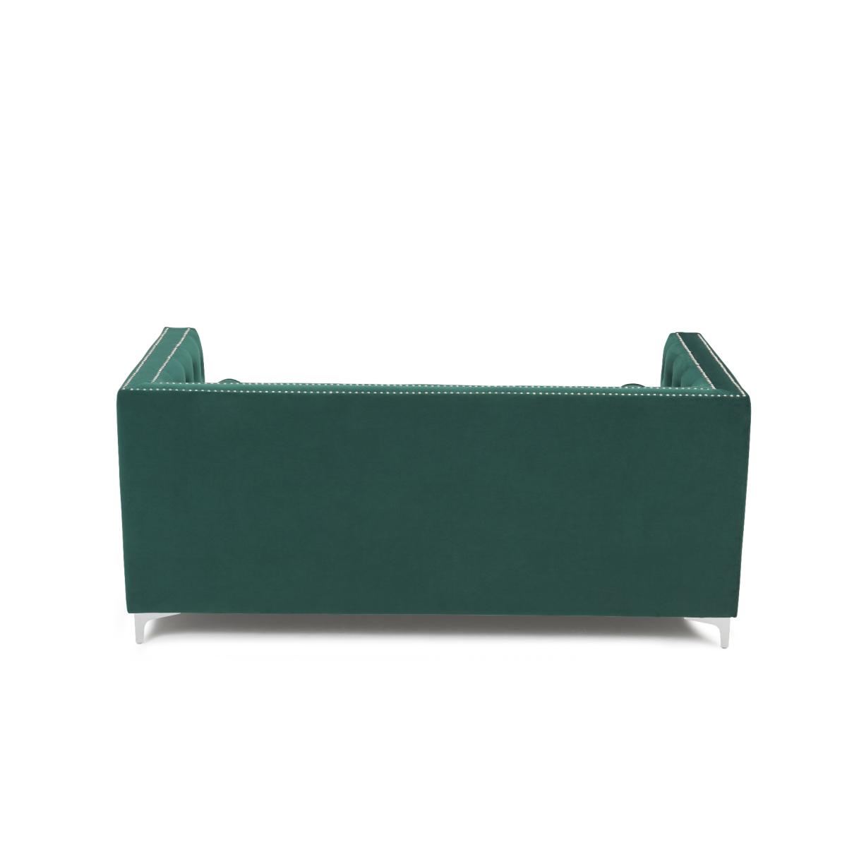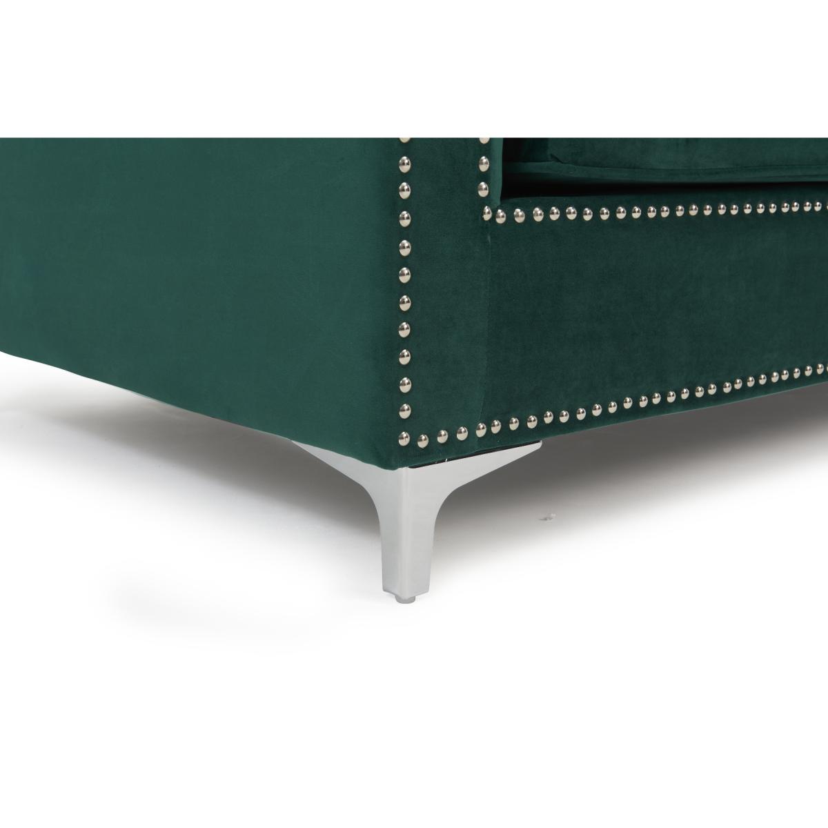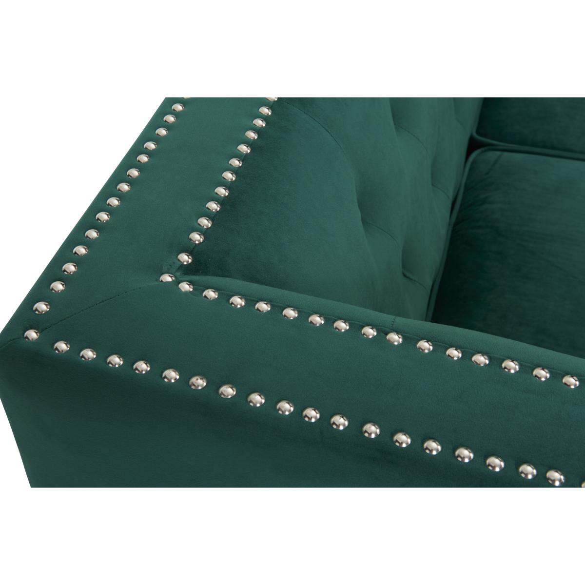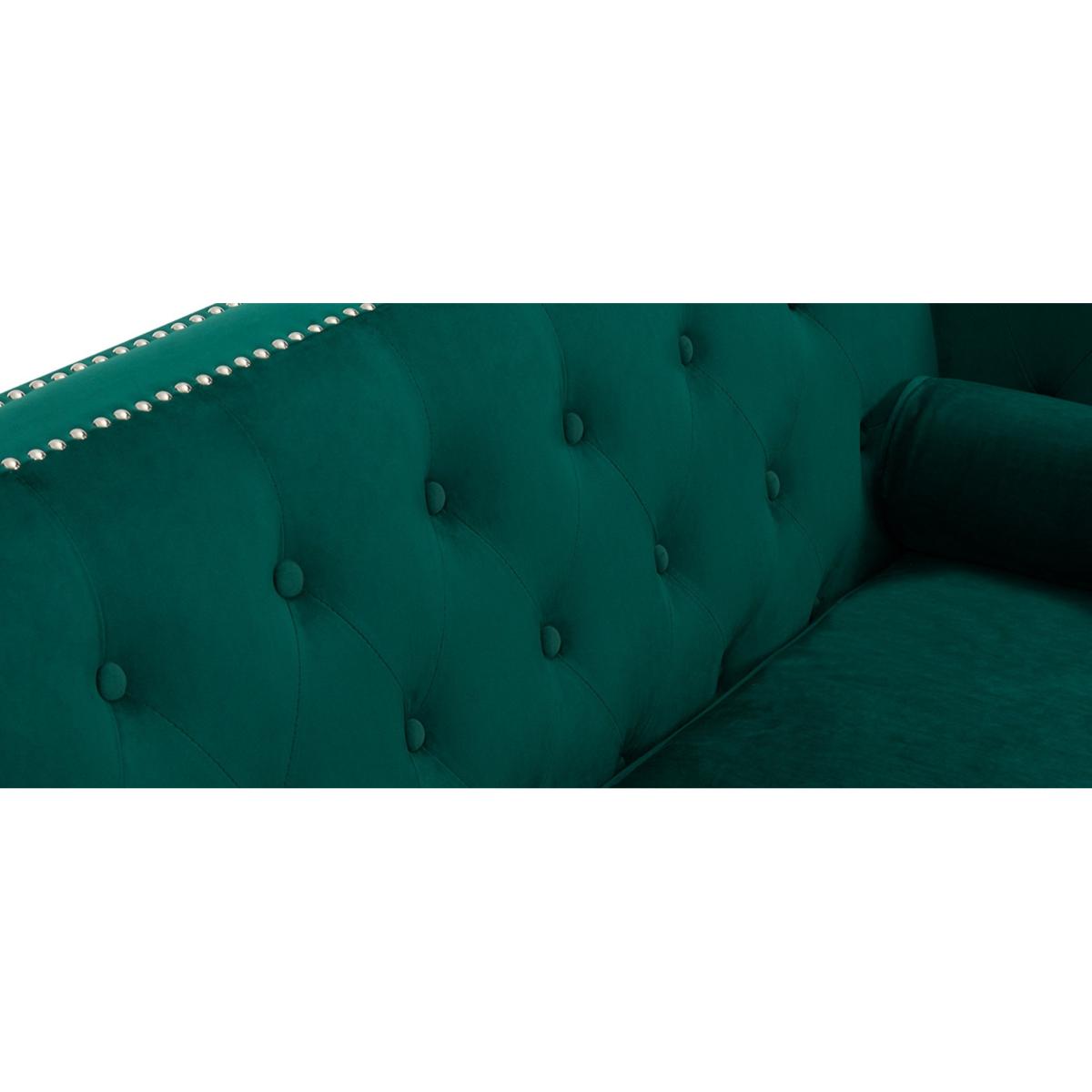 The New York Green Velvet 3 Seater Sofa brings elegance and practicality to any living area. Chic and comfortable, the 3 seater sofa is upholstered in smooth rich green velvet and features a tufted button design on the backrest and inside the armrests. Finishing the look, metal stud detailing runs along the edges of the sofa. Complete with resilient metal feet, the velvet sofa is supplied with 2 free scatter cushions and 2 free bolster cushions.