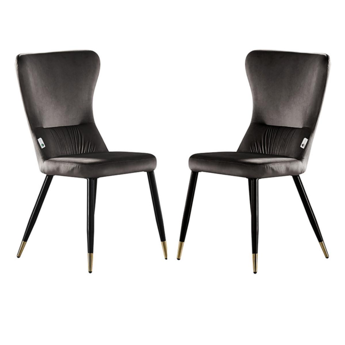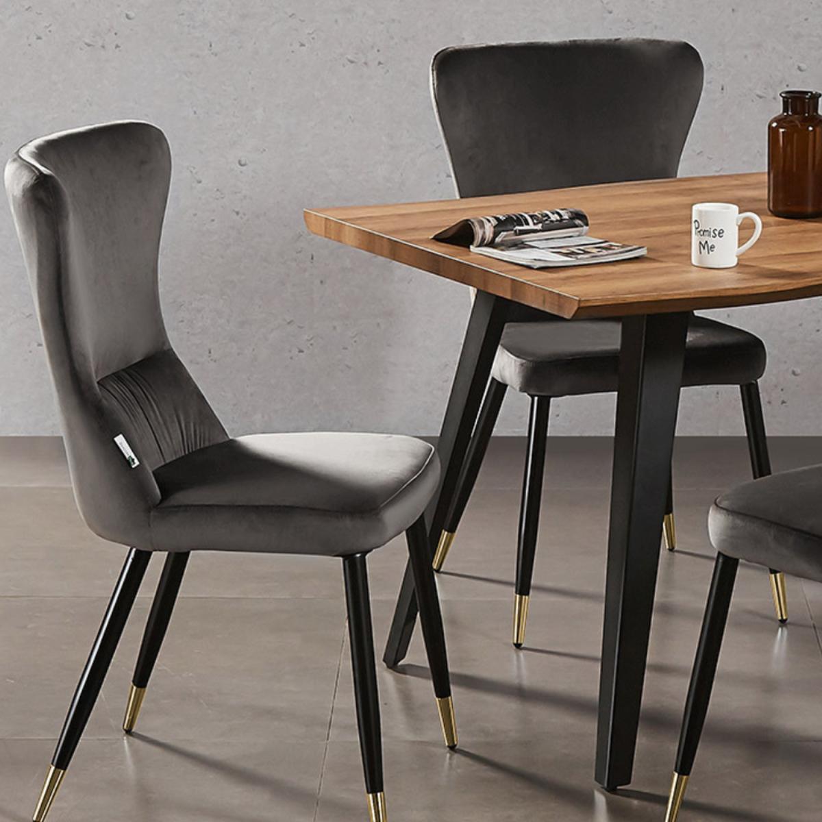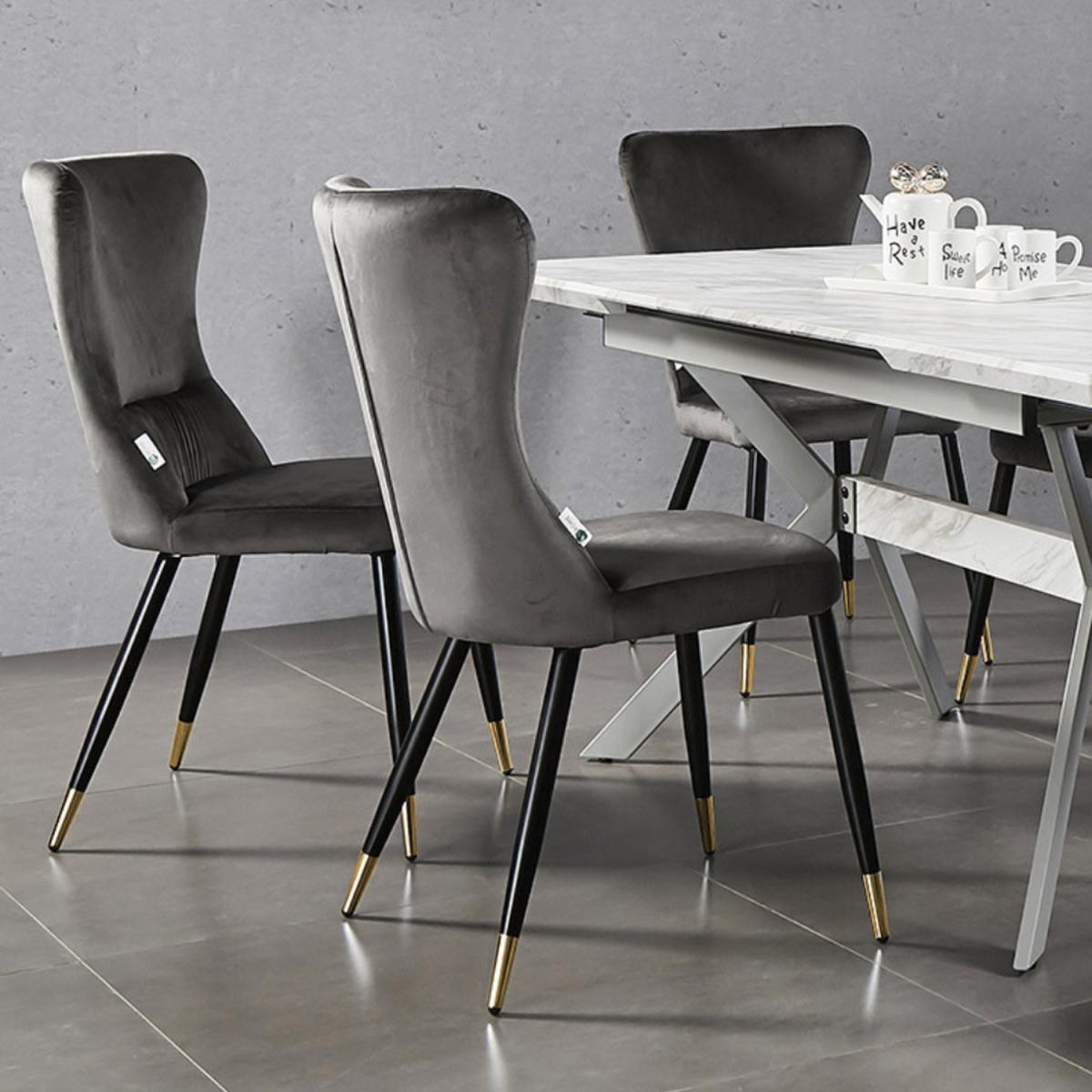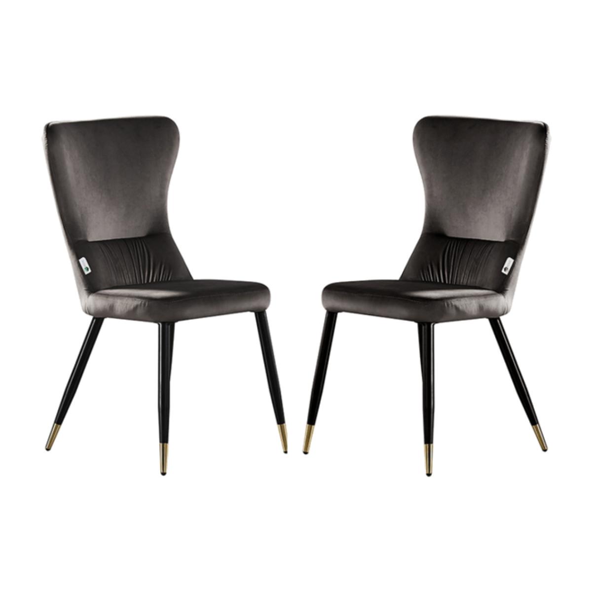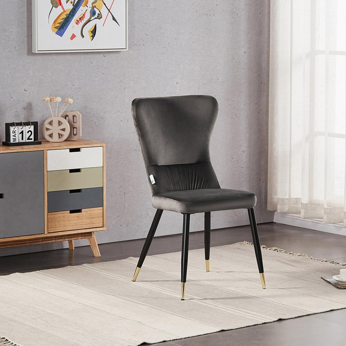 Our modern and full-of-passion dining chair features a Curved high back, shapely arms, and contemporary black legs with silver chrome tips. This chair is simply a modern classic upholstered in rich velvet. The chair is a true destination of relaxation and is absolute for any dining or living space. Perfectly suitable for dining, living, meeting, restaurants, celebrations, dressing room, and office. You wont feel tired or stiff even though sitting for a long time. The elegant Chairs have been designed to offer comfort, and durability while upholstered back with roomy seat areas to relieve the pressure on your back and legs and enable you to relax your body and sit comfortably. The Chair also comes with adjustable feet, perfect for uneven surfaces and general stability.