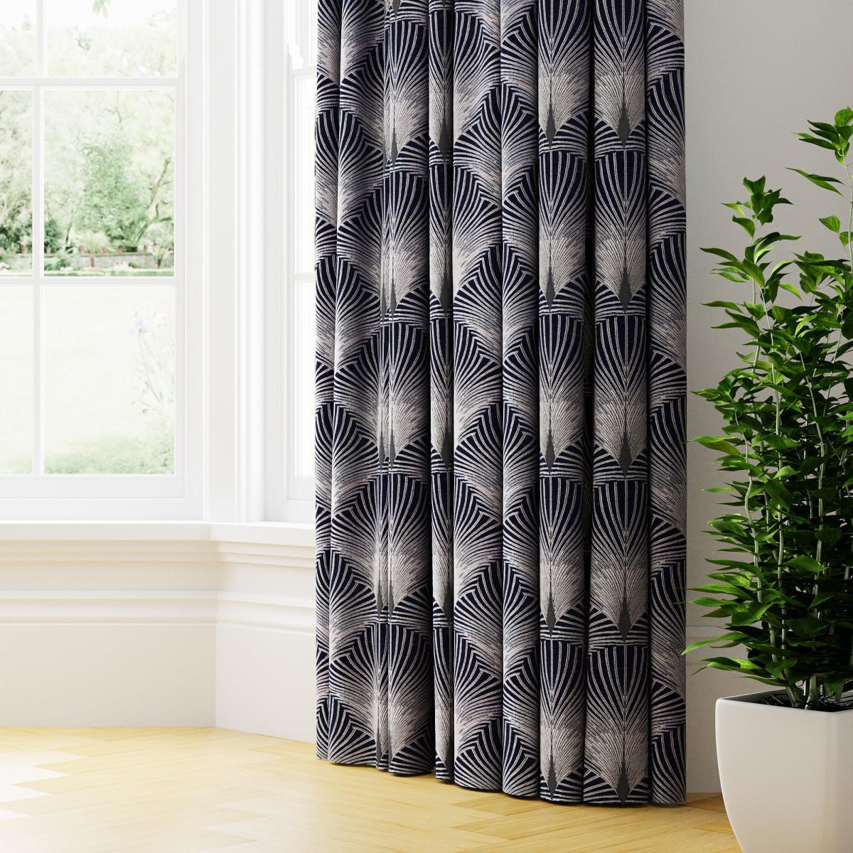 New York Made to Measure Curtains Navy Blue/White