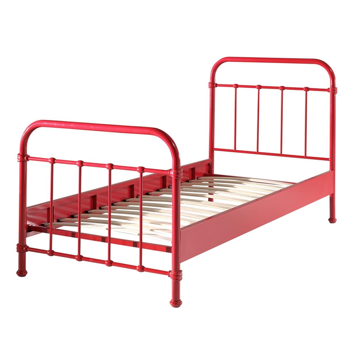 Simple yet stylish, the New York Metal Kids Bed in Red is a bed that can see your kiddie through childhood and beyond. With five funky, bright colours to choose from it will transform their bedroom from drab to fab! Made from metal with a powder coated finish, with plenty of space under the bed you'll have no problem fitting those toys, board games and monsters under there! Available in two sizes there will be a perfect option whether their bedroom is big or small! You could even wrap some fairy lights around the frame to create a cosy nest for your youngster.