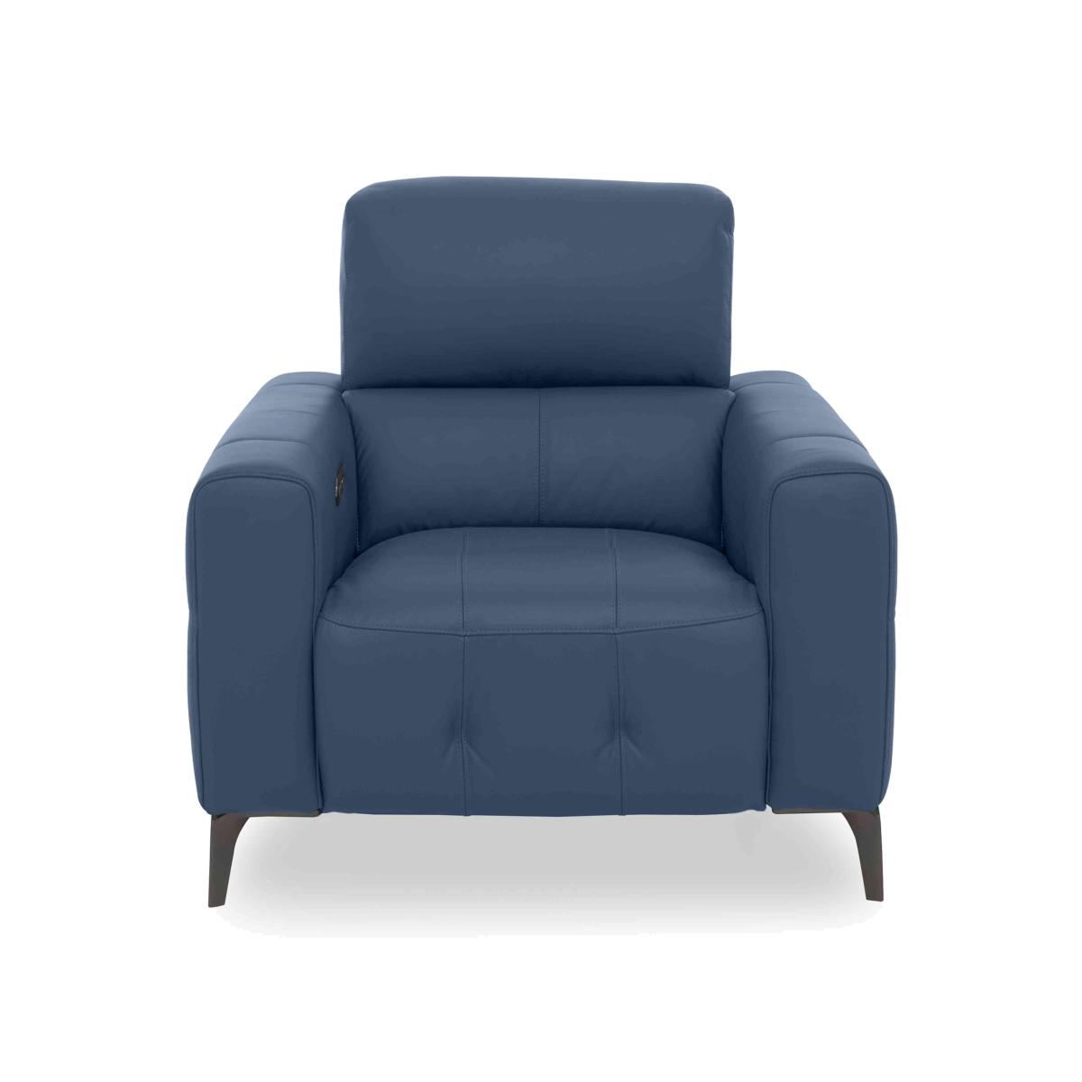 Bring home cool loft-living style and relaxed comfort with our New York range. With independently adjustable reclining backs, elevating footrests and telescopic headrests, the power recliner sofas and chairs in this collection promise comfort – your way. And the look is as sleek and inviting as any you’d find in New York's most stylish apartments. Those wide boxy arms, luxuriously deep seats, shiny metal stiletto-style legs and understated buttoning ensure that the New York collection perfectly channels bold and fashion-forward NYC style. The New York range is entirely handmade and only available at Furniture Village. Here’s the recliner armchair that you’ll want to make your own. And as well as providing personalised and adjustable comfort, it looks quite fabulous too. Why you'll love it Bring home the loft-living look. Cool style meets all-day comfort. The back reclines and footrest elevates independently for relaxation your way. Adjustable power telescopic headrest guarantees customised comfort. Sprung seats for that perfect balance of comfort and support. 100% leather upholstery in a huge choice of fashionable colours. Stylish details – buttoning, polished metal legs and built-in USB charging. Also available without the power recliner and headrest. Handmade and only at Furniture Village. This leather power recliner chair is part of our New York range. What you need to know Medium comfort level. Seat suspension: no-sag spring. Seat cushioning: foam and inner coil. Seat cushion is fixed. Back suspension: rubber webbing. Back cushioning: foam and loose fibre. Back cushion is fixed. Feet are removable. The non-recliner version of this chair has fixed headrests and no USB charging. Please allow time for the recliner mechanism to ease. Minor gaps are necessary to ensure ease of motion and may be exaggerated depending on floor type. Leather has unique marks and characteristics with variance in colour and texture. Leather softens with use. Smoothing the tops of leather cushions prevents signs of visual comfort. Fixed seat and back cushions require smoothing and straightening regularly. To smooth and straighten fixed cushions, punch the back cushion’s top two corners and the seat cushion’s outer two corners, and pinch outwards. Please read our upholstery care guide for more advice.