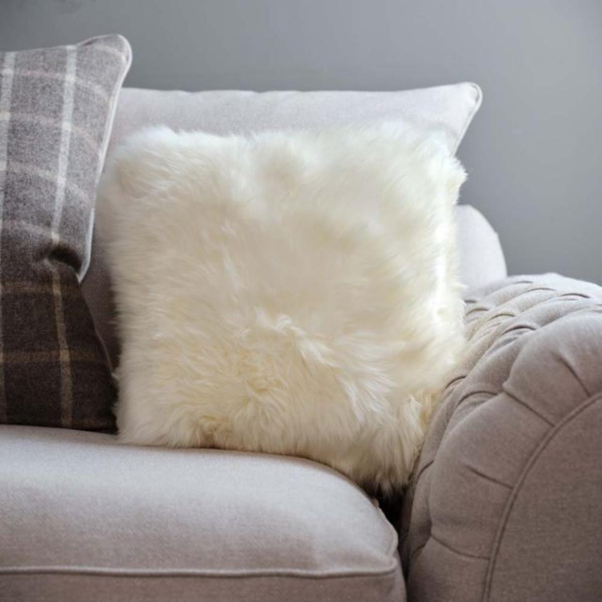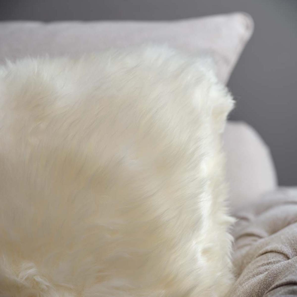 Introducing a slice of luxury into your home doesnt need to cost an arm and a leg. A few beautiful home accessories can instantly transform your living space from dull to full of life. This stunning New Zealand ivory double-sided sheepskin cushion is just the thing. Introducing an extra dimension to your home, inviting comfort and warmth. Square ivory double-sided sheepskin cushion - 6cm pile height100 genuine long wool sheepskin. Dimensions L35cm x W35cm48 hour delivery and no quibble returns. Easy to maintain. How to care for your sheepskin cushion. Caring for your sheepskin cushion couldnt be easier. With all our sheepskins we recommend you use a metal bristled brush to ensure it stays in tip top condition. For washing use the wool wash cycle on your washing machine in warm water max 40 C. Use a mild liquid detergent, do not use soap or washing powder containing enzymes or bleach. Can be tumble dried on a cool setting or line dried avoiding direct sunlight. After washing, the wool may revert back to its natural curly state. You can help restore the fluffy appearance by brushing the wool while it is wet and again when it is dry. A wire pet brush or comb is suitable.