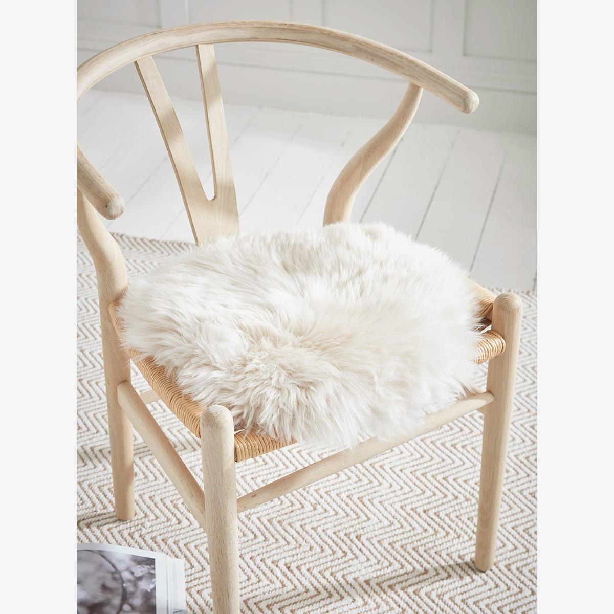 With just the lightest hint of a warm grey tint to elevate the natural cream, add some luxe comfort and warmth to your kitchen stools, benches or dining chairs with our New Zealand Sheepskin Seat Pad. These handcut pads have longish straight fur for a truly decadent tactile experience.