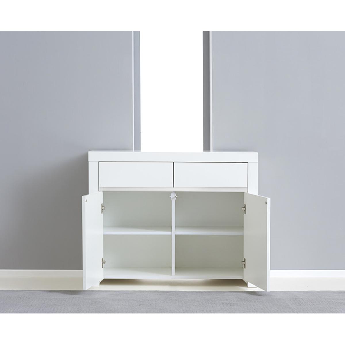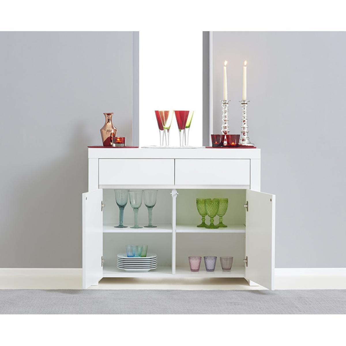 Sleek lines and high-shine white gloss make the Newark sideboard a contemporary option. A stunning mix of practical storage and modern minimalism