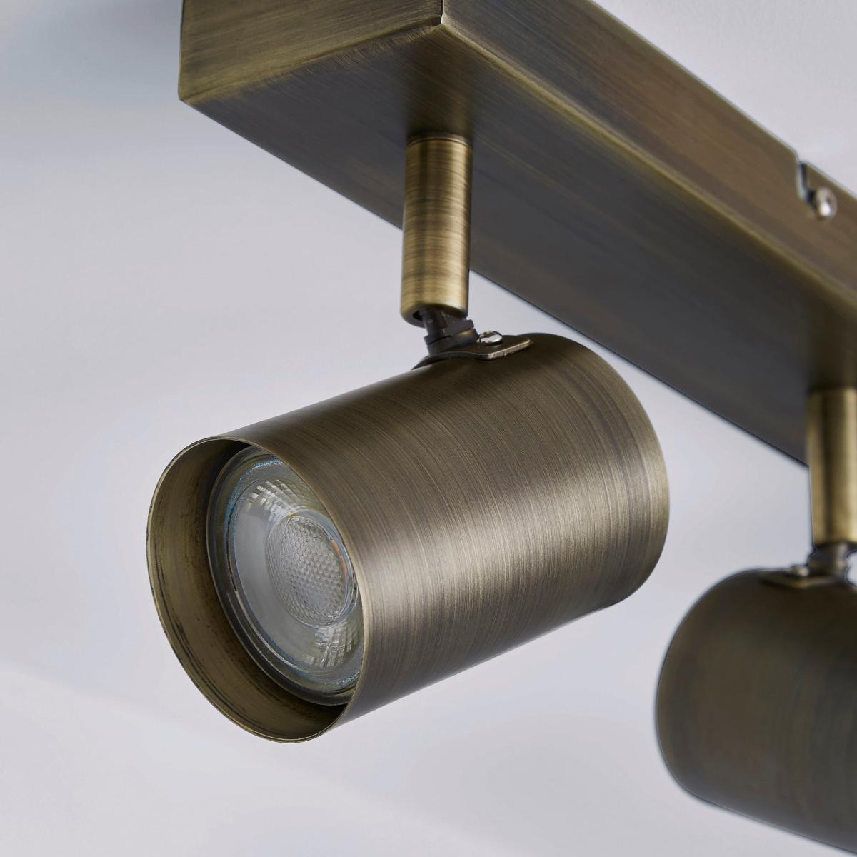 This stylish dimmable bronze 4 bar ceiling light is ideal for adding a contemporary touch to your home. Designed specifically for use with LED spotlight bulbs, this fitting can be adjusted by titling and swivelling each head to point the light in the direction of your choice. Please note this does not come with bulbs. Click. Here. To view our range of bulbs.