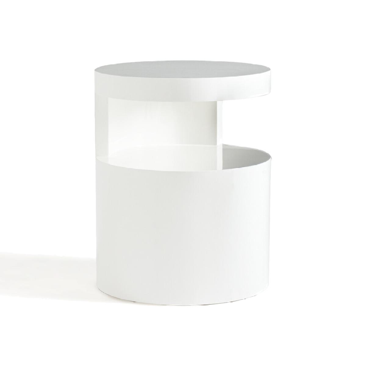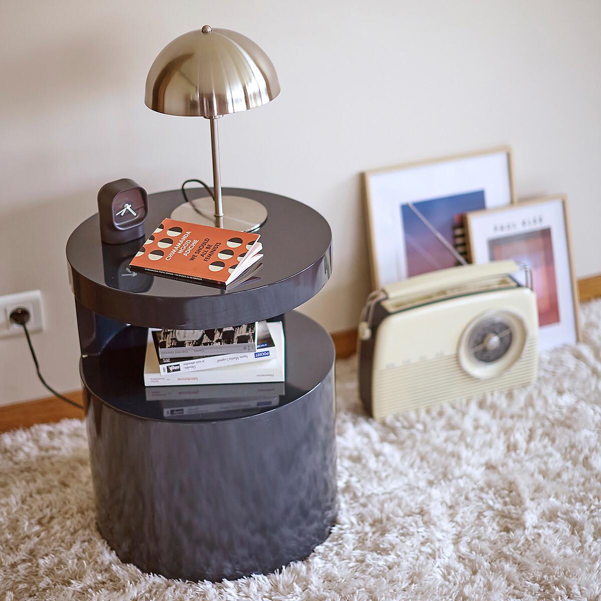 I love this bed side table because its sleek, cylindrical design and glossy finish make it a versatile piece that can complement both modern and contemporary interiors. It works particularly well in minimalist schemes or spaces with a monochrome palette, adding a touch of sophistication without overwhelming the room. Practical styling tips include pairing it with a simple lamp or a small plant on top, and using the open shelf space for books or decorative items to keep the surface clutter-free. Its shape and finish make it easy to incorporate into various layouts, whether next to a bed or as an accent piece in a lounge area, offering both style and function in one compact form.