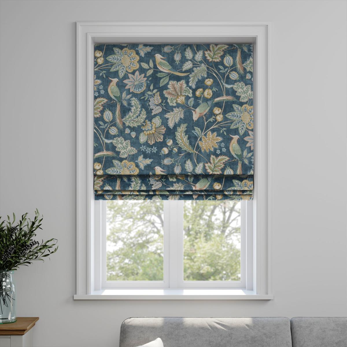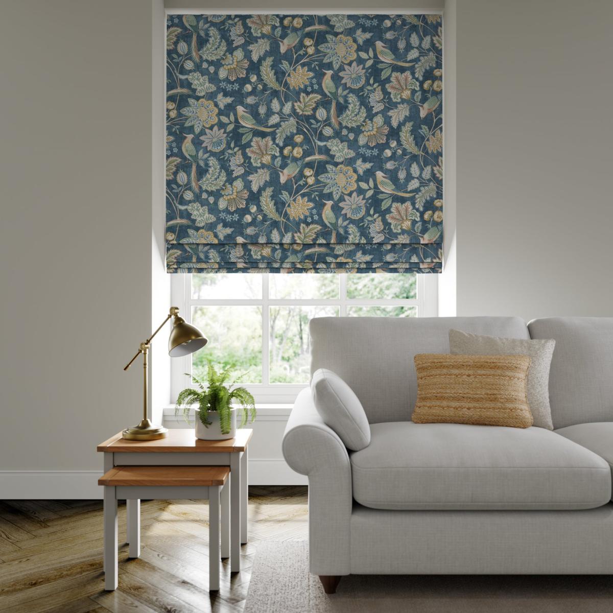 Infuse your space with modern floral elegance using this 100% cotton fabric, showcasing a contemporary floral design that adds a refreshing and vibrant touch to your interior decor. The blue colour palette evokes a sense of tranquillity and serenity, creating a calming ambiance. Choosing your lining: Choosing your fitting type:; Choosing which side you’d like the operating chain: Need help deciding or measuring? Book a free appointment with one of our consultants! Child Safety: We add clips to the back of our roman blinds to attach the cords to the fabric. They also double up as a child safety feature. If pressure is exerted the clips will detach to prevent the risk of strangulation. Please read our Blinds Safety Guide for more information. If the clips detach accidentally during normal use, they can be easily re-clipped back into place.
