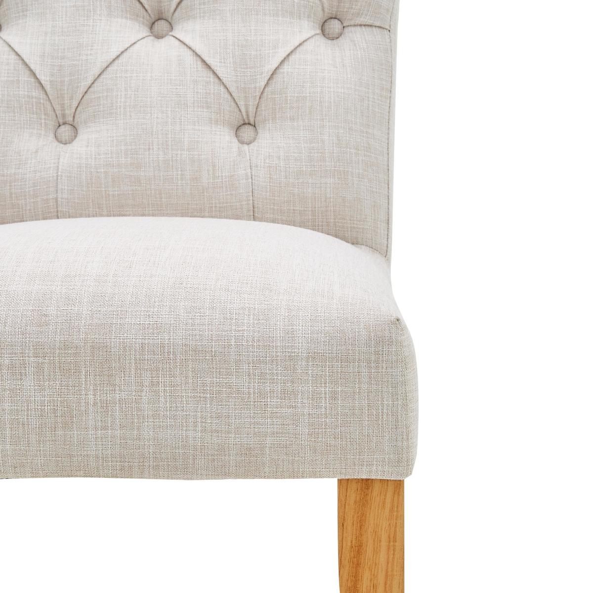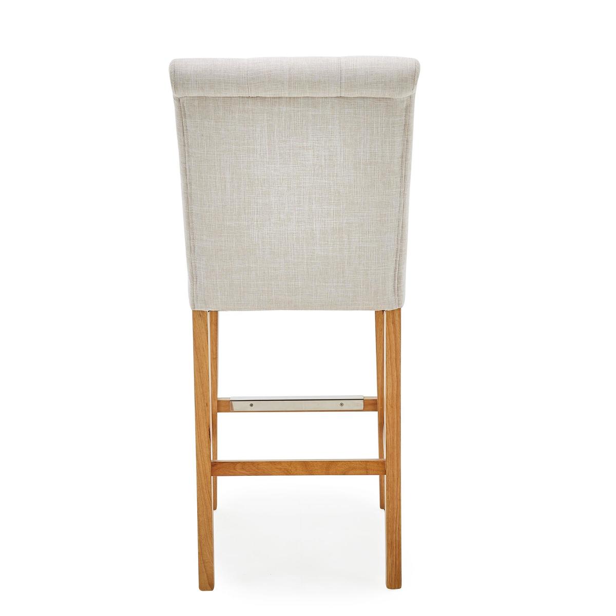 With its timeless, elegant style, the Newbury linen bar stool would be a great addition to your kitchen or dining space and is upholstered in a natural coloured, linen look flatweave fabric. With its comfortable foam-filled, sprung and webbed seat, this fully assembled bar stool features a classic button back detailing and contrasting black painted solid pine legs, complete with a crossbar footrest, and is the perfect height to suit standard UK counter tops. \n\n[Click here to view this bar stool in grey](https://www.dunelm.com/product/newbury-bar-stool-grey-velvet-1000157976)