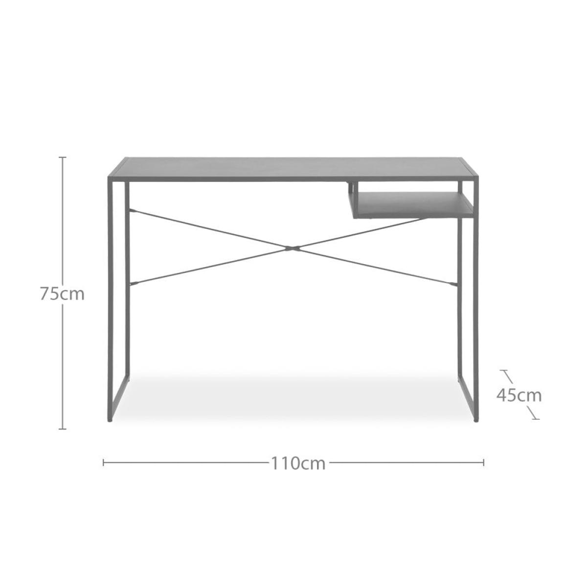 I love this desk for its sleek, modern aesthetic and versatile black finish, making it an ideal fit for contemporary or minimalist interiors. It works well in spaces that need a practical yet stylish workspace, especially in homes or offices with a monochrome or industrial palette. To style it effectively, consider adding a statement desk lamp, a small potted plant, or some organise desk accessories to soften the look and add personality. Its simple design also allows it to be paired with a variety of seating options, from upholstered chairs to metal or wooden stools, depending on the vibe you want to create. Overall, a practical yet stylish piece that balances form and function beautifully.