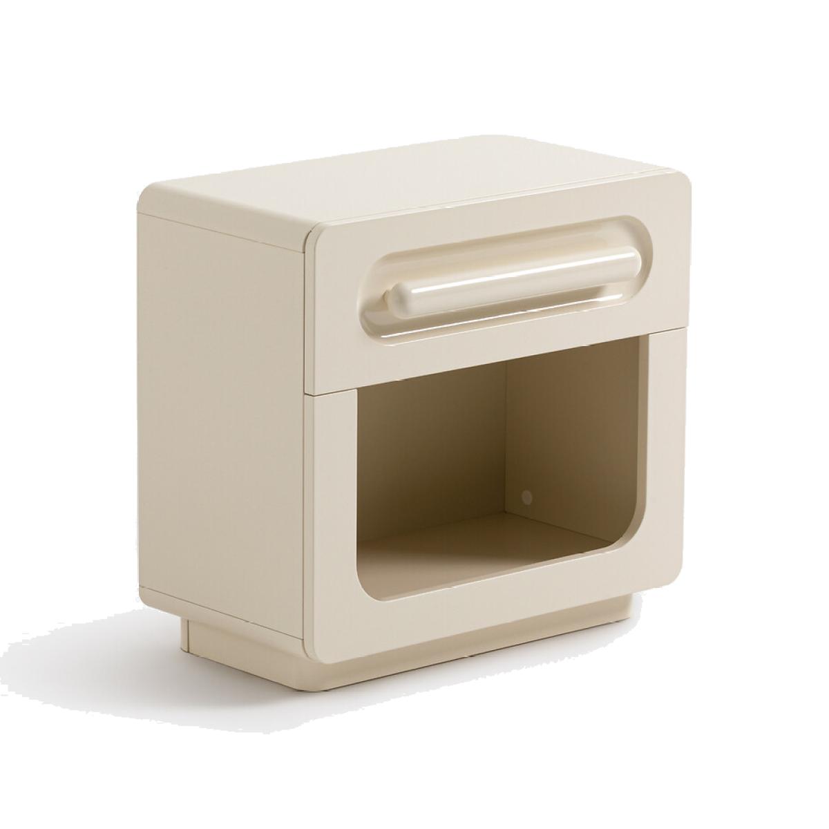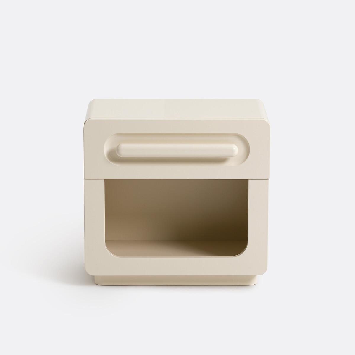 Inspired by vintage design. Functional elegance. Made in Europe. Introducing the Newcool bedside table. With its drawer and compartment, it offers storage space that's as practical as it is attractive. Designed by La Redoute Intérieurs. Product Details • Cabinet and drawer front in high-shine lacquered MDF with a glossy polyurethane finish • Drawer handle in high-shine lacquered solid oak with glossy polyurethane finish • 1 drawer and 1 compartmentDimensions. Overall • Width: 55cm • Height: 52cm • Depth: 30cm • Weight: 16kg. Usable dimensions • Drawer: L45.4 x H10.9 x D23.4cm • Compartment:L51.3 x H26.8 x D26.8cm • This product requires assembly. • WOOD FROM MORE SUSTAINABLY MANAGED FORESTS AND CONTROLLED SOURCES. FSC® Mix wood contains at least 70% FSC® certified and/or recycled wood, the remainder being FSC® controlled wood. Dimensions and weight of parcel1 parcel • L73 x H15 x D53cm. 17kg
