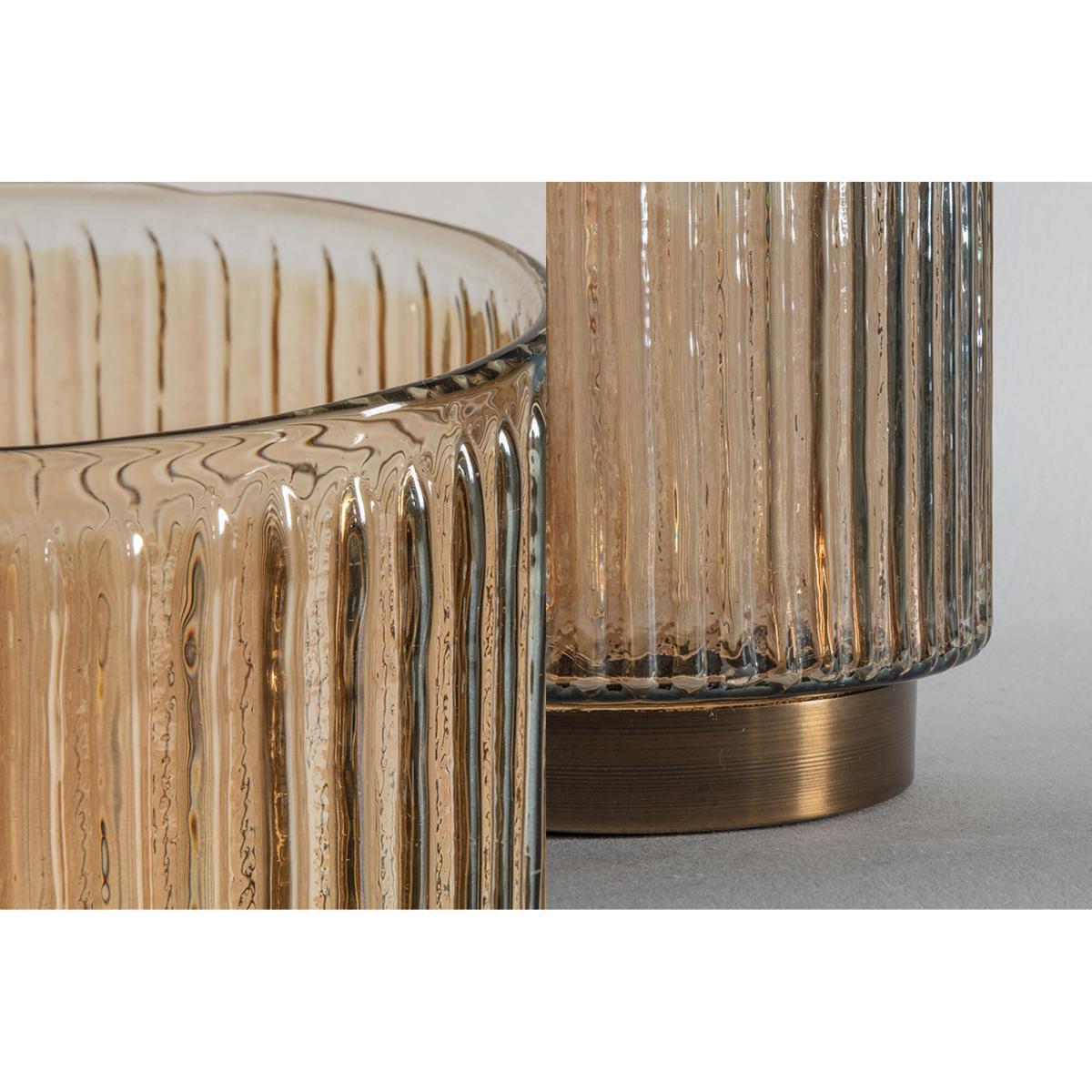 I really like this large candle holder for its substantial presence and warm metallic finish, which adds a touch of sophistication to any space. It works particularly well in modern or industrial-inspired interiors, but can also elevate more traditional schemes when paired with neutral tones. For styling, consider placing it on a mantelpiece, side table, or console to create a striking focal point. Practical tip: group it with smaller candles or complementary metallic accessories to balance visual weight and enhance the overall aesthetic. Its size makes it ideal for creating cosy, inviting atmospheres when lit, offering both form and function in one piece.