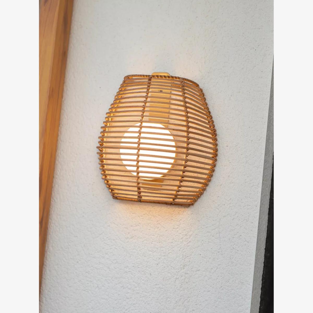 I love this wall light for its clean, minimalist design that adds warmth and texture to outdoor spaces. It works especially well in contemporary or Scandinavian-inspired exteriors, where natural materials and simplified forms are key. The rattan-inspired finish lends a relaxed, inviting feel, making it perfect for on-trend patios, garden walls, or porch areas. For styling, consider pairing it with neutral-toned furniture and greenery to enhance its natural look. Practical tips include placing it at eye level for ambient lighting and using it to highlight architectural features or define outdoor seating areas, creating a cosy yet functional space for evening use.