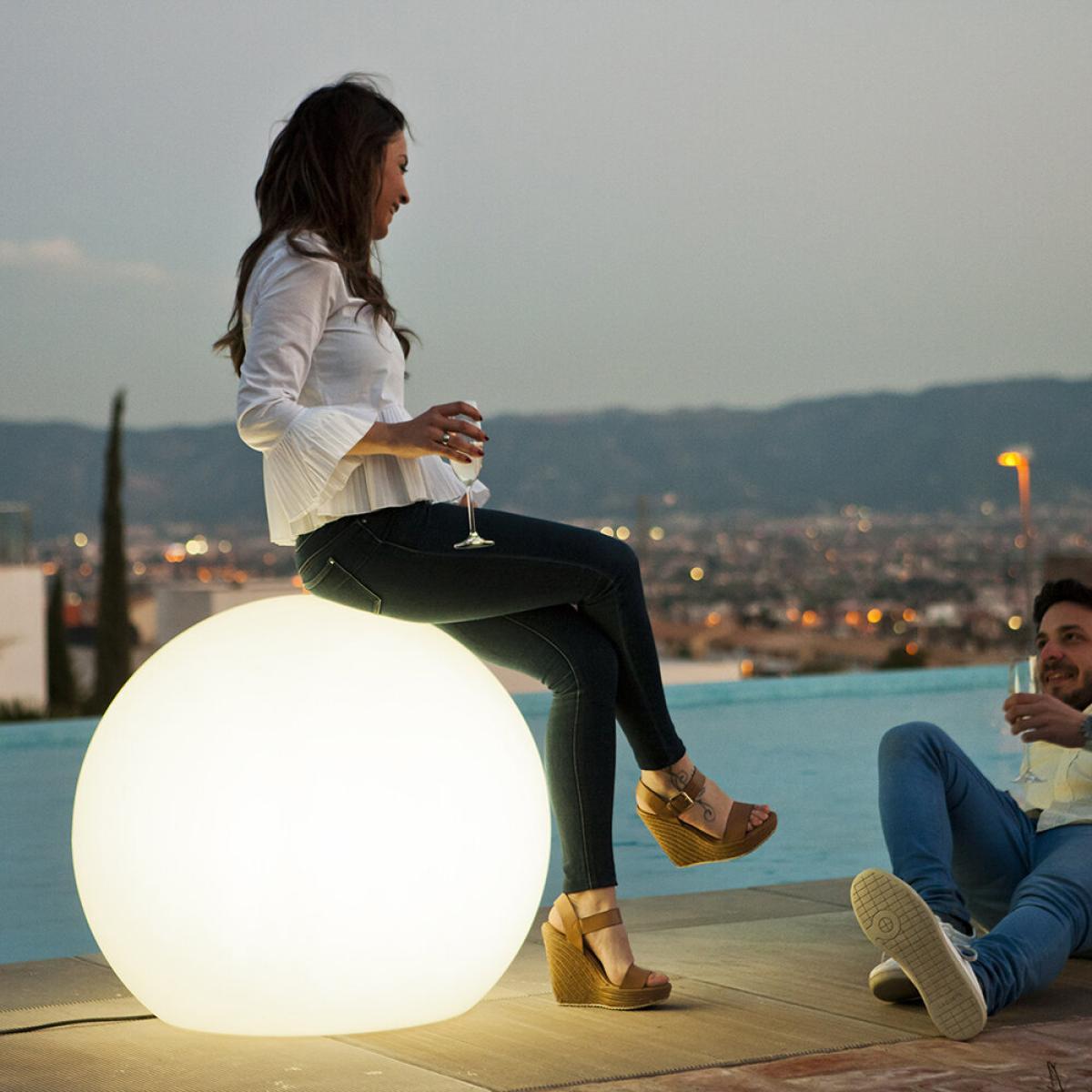 Give your garden the glow-up it deserves with this Buly solar light from Newgarden. Expertly crafted from recyclable polyethylene, this weatherproof lamp features a translucent white finish that emits a beautiful glow and is available in two sizes. Key features: * Material: recyclable polyethylene * Dimensions: Ø80xH70cm * Battery life: 12-36 hours (approx.) * Charge time: 6 hours (approx.) * Dimmable function * With 13 light colours to choose from * And 4 flash settings * Remote control included * Wireless and fully portable once charged * Suitable for indoor and outdoor use