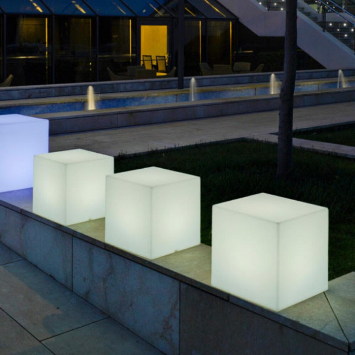Give your space the glow-up it deserves with this Cuby 45 light from Newgarden. Crafted from sustainable plastic, this mains-powered light boasts a striking cube shape in a smooth white finish. Key features: * Material: recyclable polyethylene * Dimensions: 43x43x43cm * Bulb required: 1x 6500k LED (included) * Powered by mains * Cable length: 1.5m * Warm white light * White colour * Smooth matte finish * Suitable for indoor and outdoor use