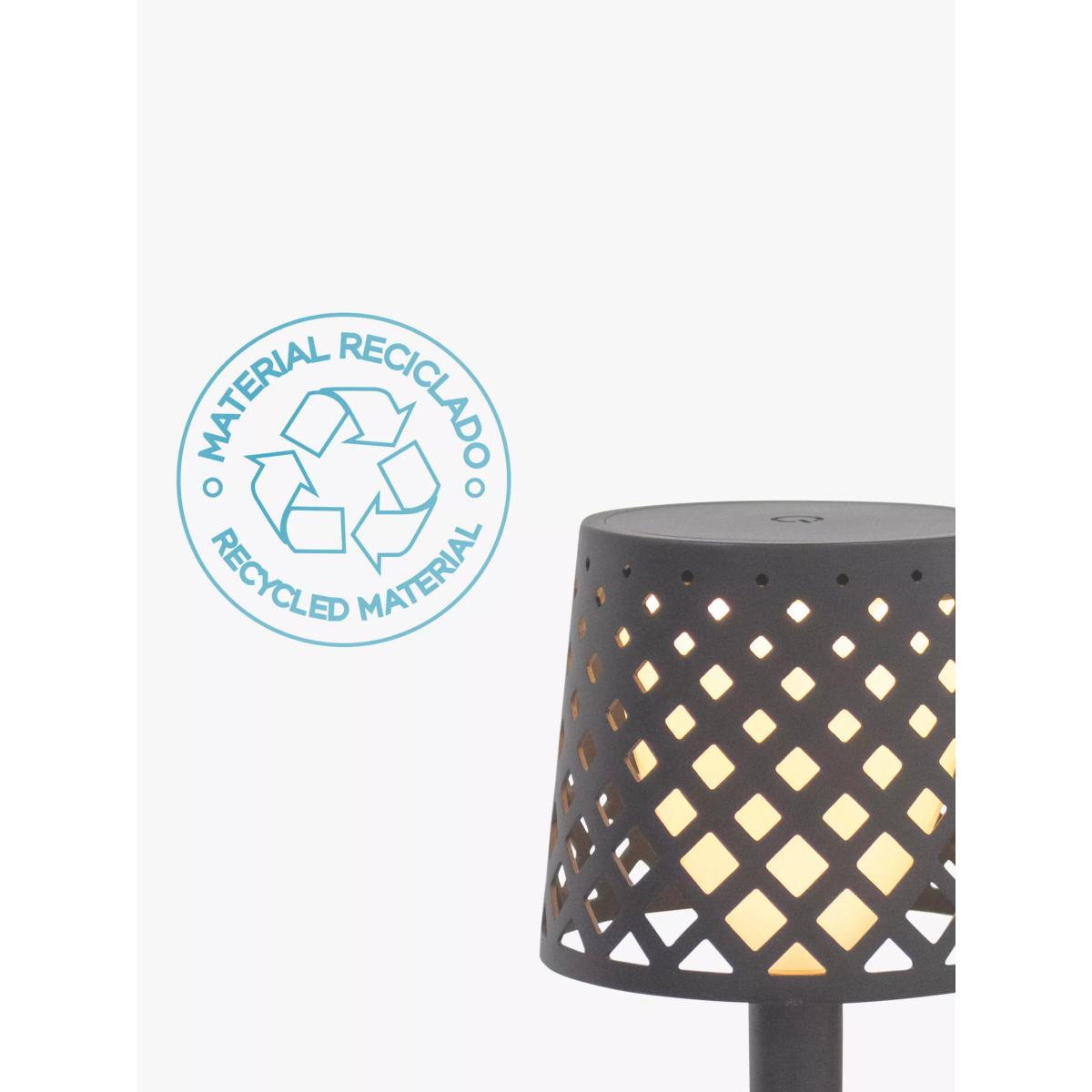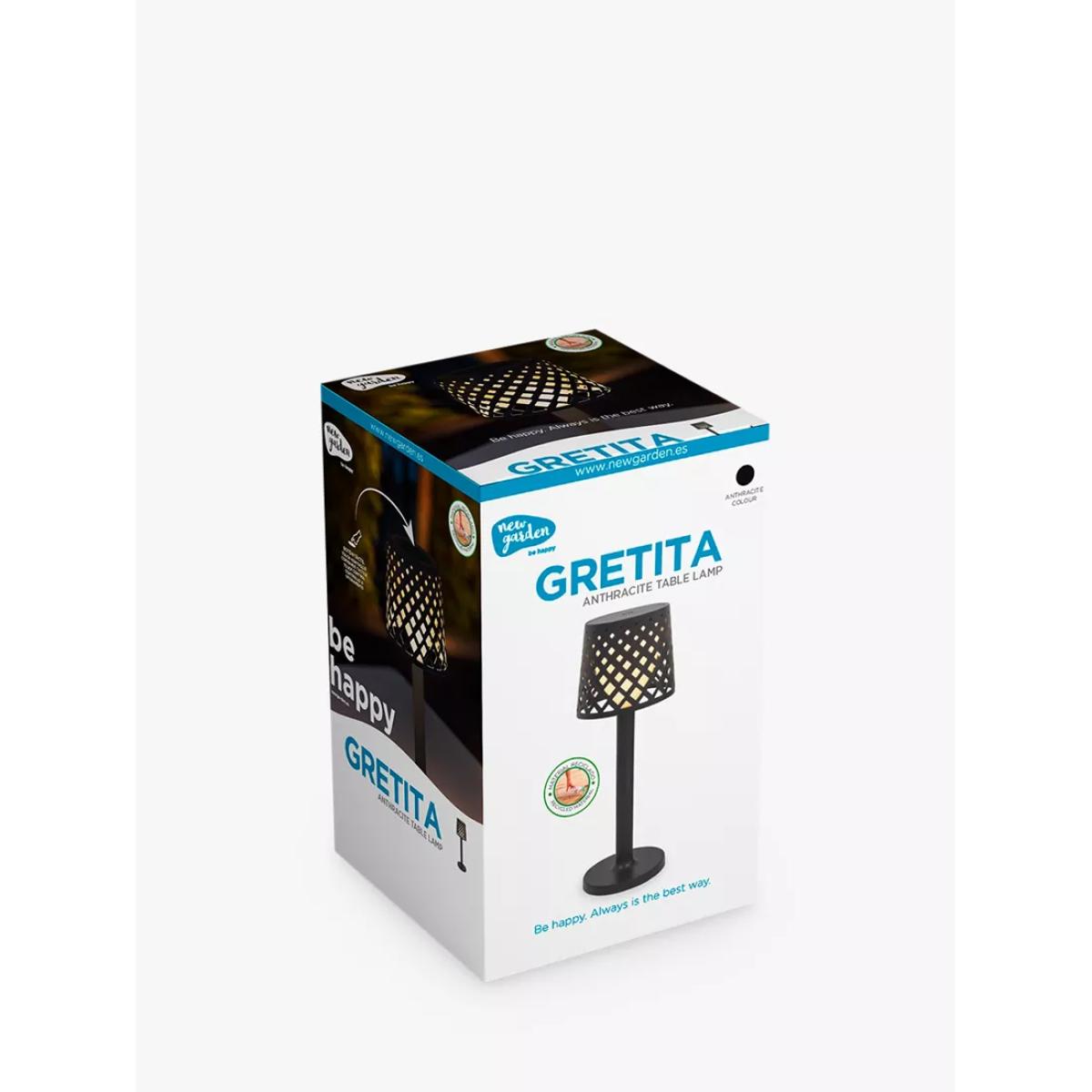 Enhance any space in your home or garden with the versatile and elegant Gretita table lamp. Crafted from recycled plastic, this lamp requires only three AAA batteries for operation, offering hassle-free lighting without the need for cables. Illuminate your table effortlessly by simply pressing the touch button on the lampshade to adjust its light intensity. Combine this chic lamp with other members of the Gretita family to create cohesive, well-lit environments with contemporary flair.