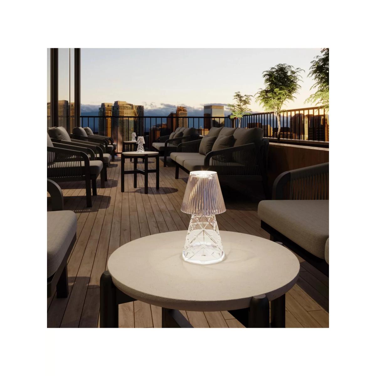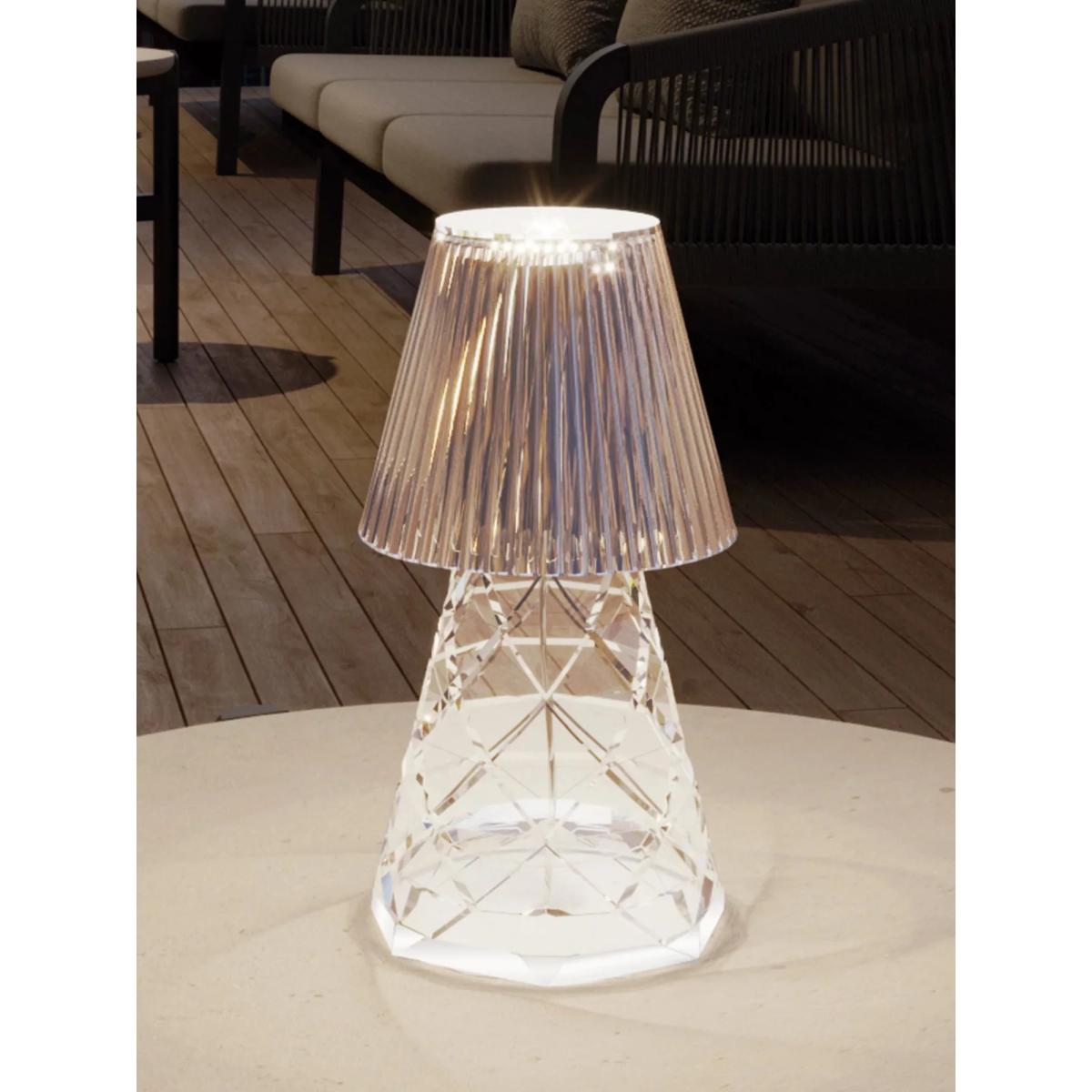 The exquisite Lola 20 Lux Table Lamp features mirror-like accents, meticulously crafted to infuse design and sophistication into any environment. Portable and cordless, it gives you up to 50 hours of uninterrupted illumination on a full battery charge. Constructed from durable transparent polyamide, this lamp has adjustable light intensity to suit your preference. The Lola model stands as Newgarden's iconic best-seller, loved by customers across Europe. Add a touch of elegance to your surroundings with the timeless allure of the Lola 20 Lux Table Lamp.