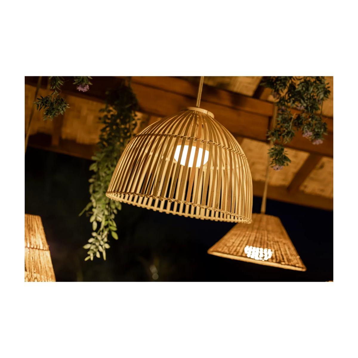 This wireless outdoor hanging pendant light from Newgarden is very easy to install, this lamp will become an essential to illuminate any space in your garden giving it a natural touch. The Reona 330 includes a 3 meter rope, lampshade and a bulb, you only have to bring the bulb up close to the lamp and it will adhere due to its magnetised base. This bulb also includes a remote control to turn it on and off and regulate the intensity.