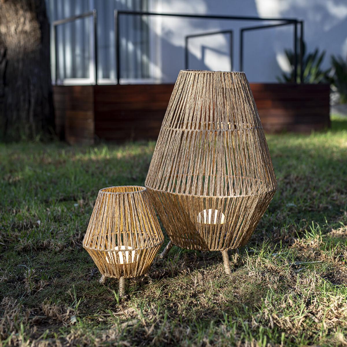 Light up your space in style with this Sisine floor lantern from Newgarden. Featuring a beautiful woven design in a natural finish, this rechargeable light is available in two sizes.