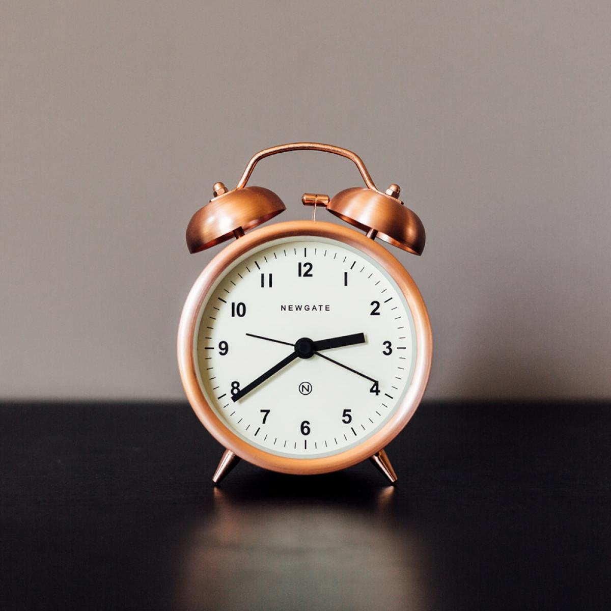 A contemporary twist on a much loved classic the Newgate Charlie Bell Alarm Clock will be there to get you out of bed on time! Its gorgeous copper finish will be sure to stand out on any bedside it graces. You could even pop this nifty clock on your desk and set it for 5 o'clock to make sure you don't work overtime! You don't even have to worry about the noise of ticking distracting you as this alarm clock is fitted with a clever silent sweep movement! Perfecto!. Features and Benefits:.