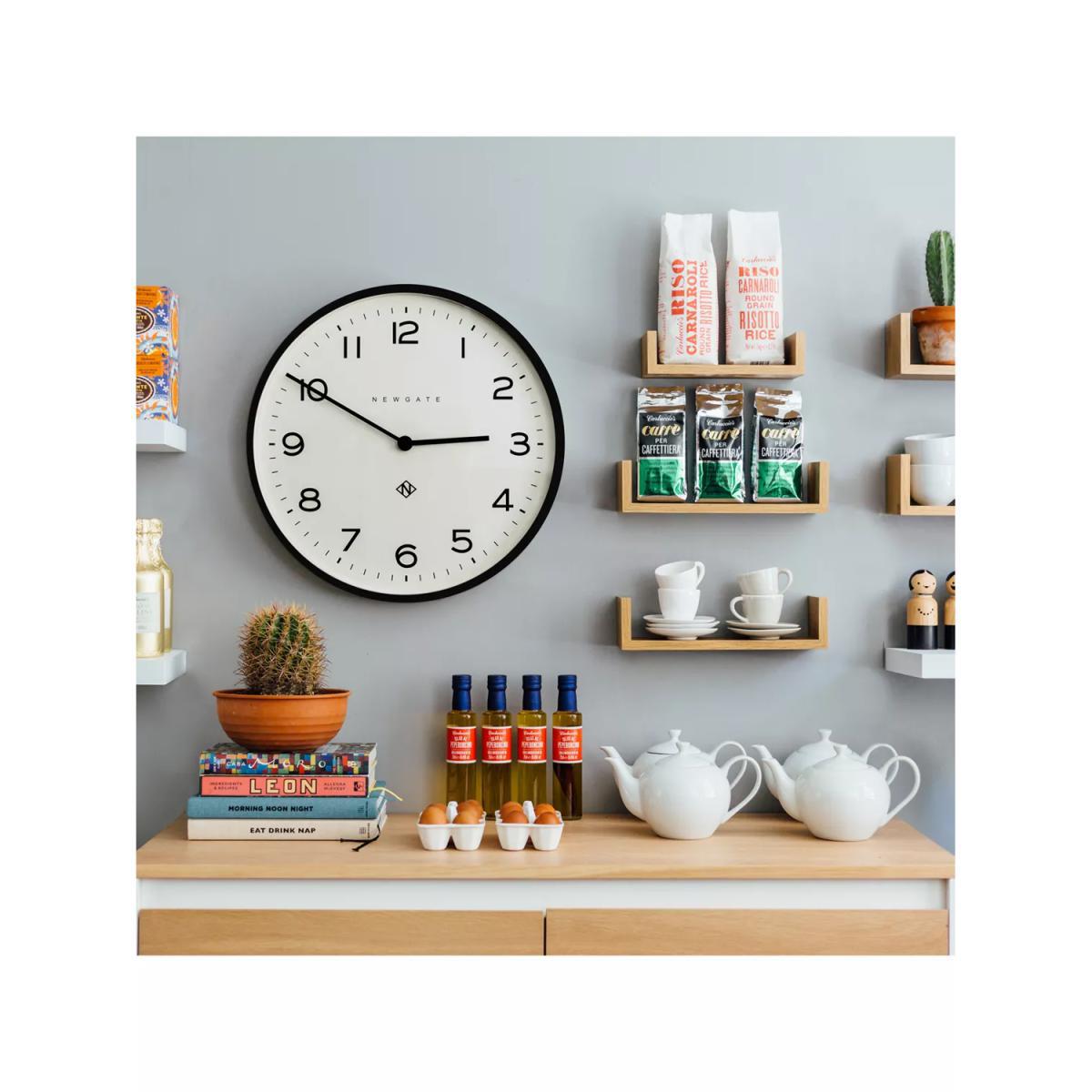 Contemporary in design, the Echo Number 1 round wall clock from Newgate Clocks has an acrylic case with a matt finish. A glass lens protects minimalist metal baton hands and Arabic numerals marking the hours.